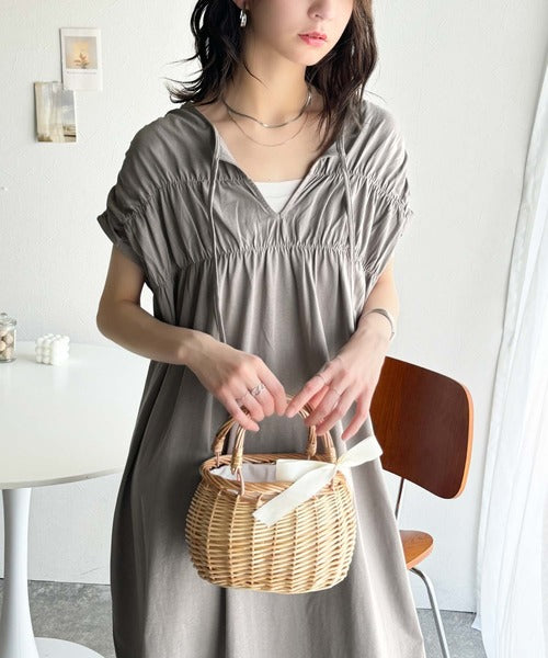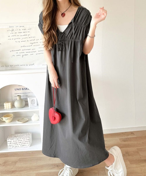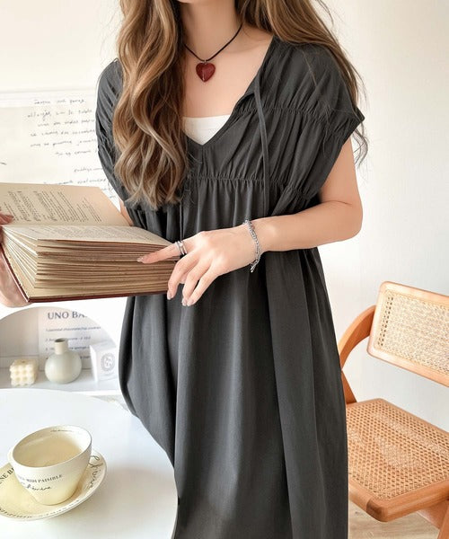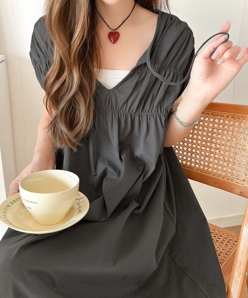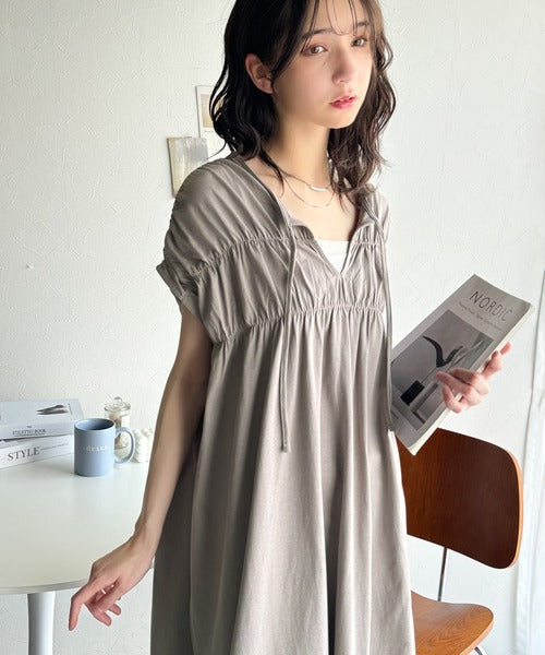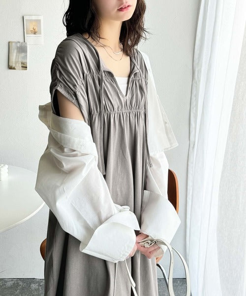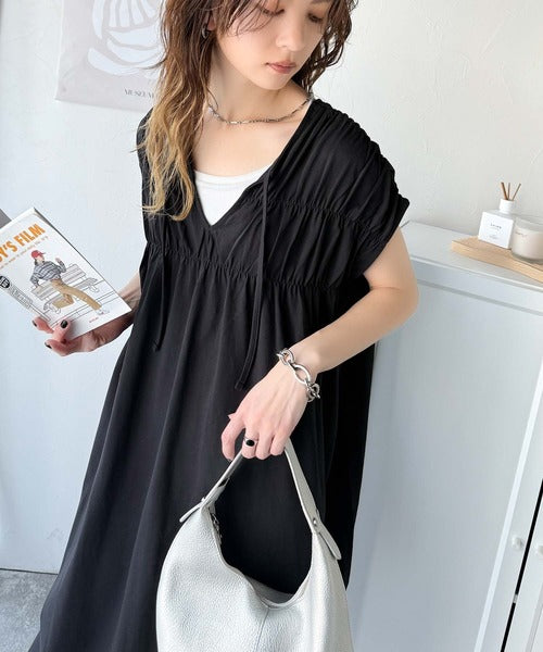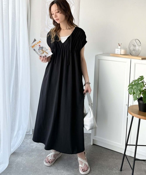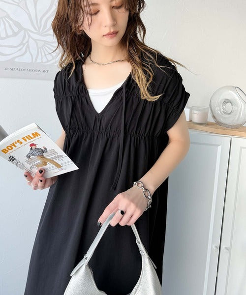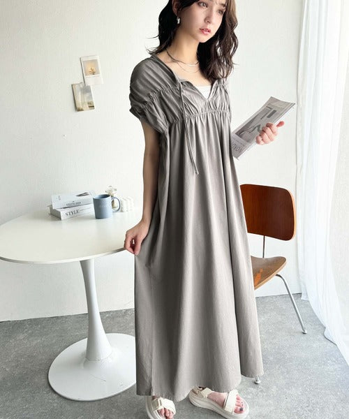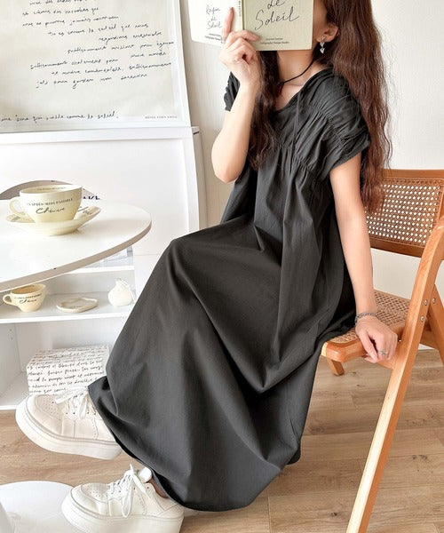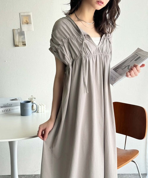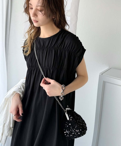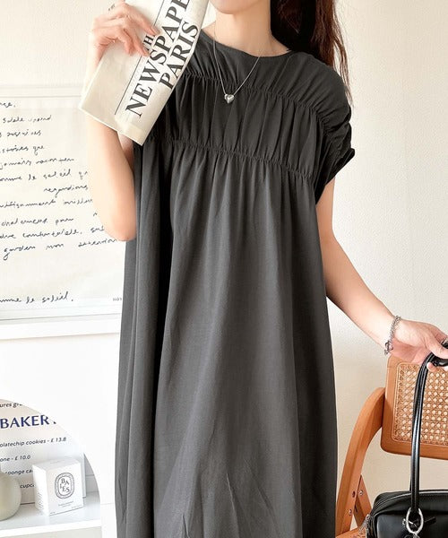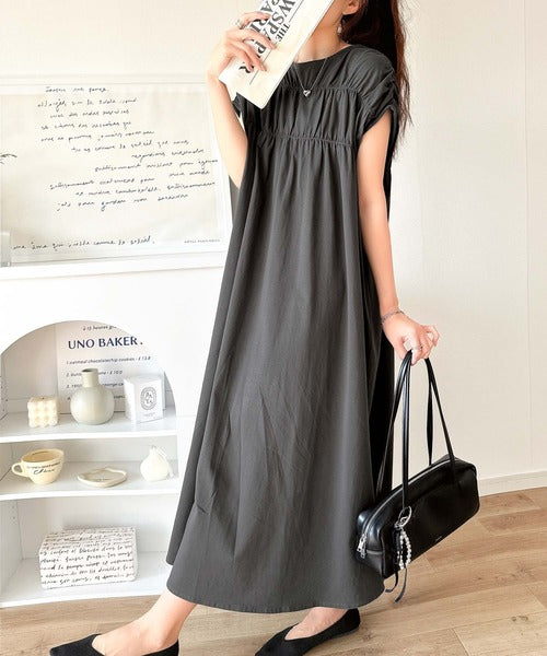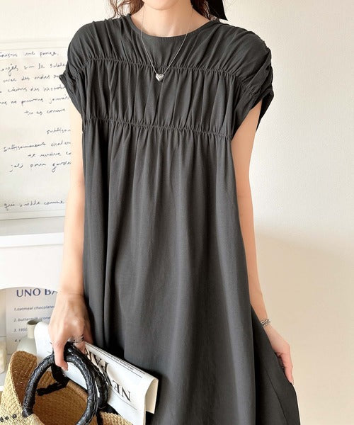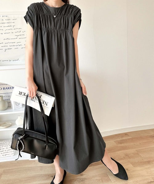 一枚で存在感抜群!主役級のシャーリングフレアワンピース。
