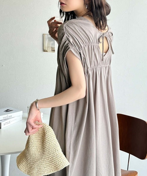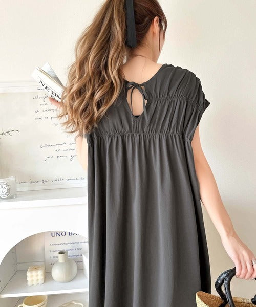 旬の素材&デザイン。大人の前後2WAYシルケット加工シャーリングフレアワンピース(ロング) ce1260393