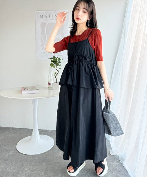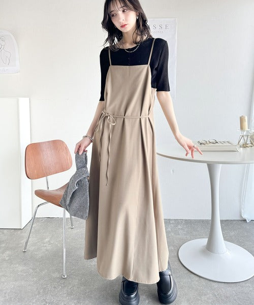 キャミワンピースを合わせれば、リラックス感あふれるフェミニンなカジュアルスタイルが完成!