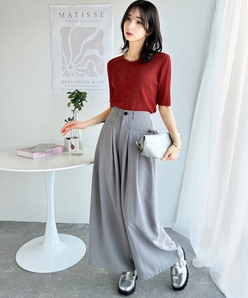 程よいフィット感のリブニットが縦ラインを強調し、スタイルを美しく見せてくれます。