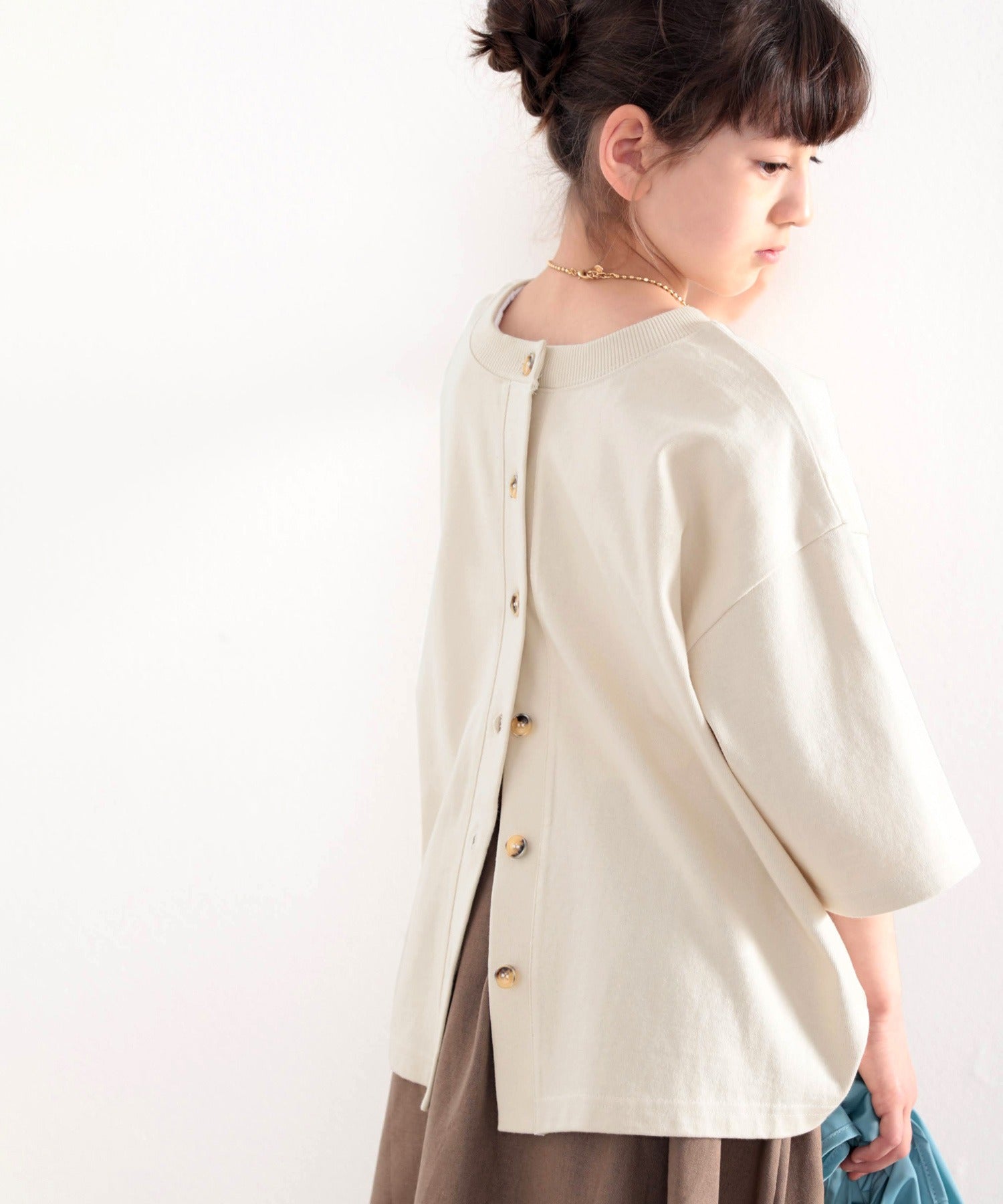 バックボタンにすれば可愛いバックボタントップスとして楽しめます。