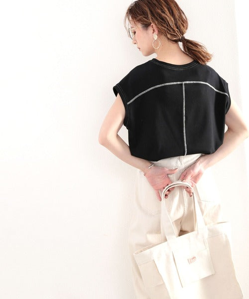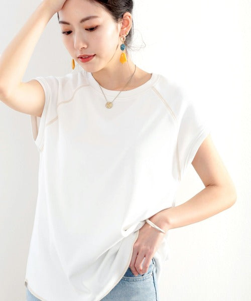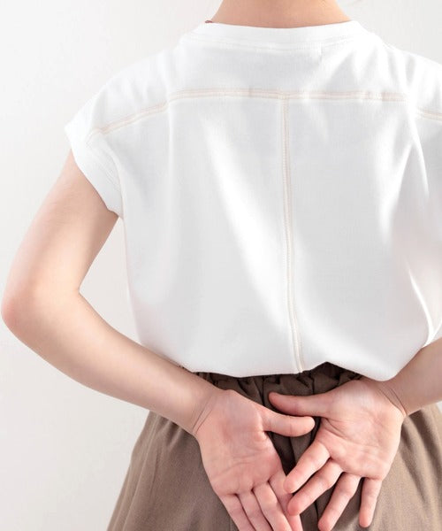 ステッチをアクセントに、大人っぽい着こなしが叶うフレンチスリーブトップス。
