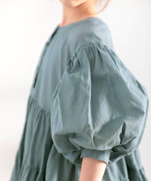 程よいふんわりシルエットとボリューム袖が愛らしい。