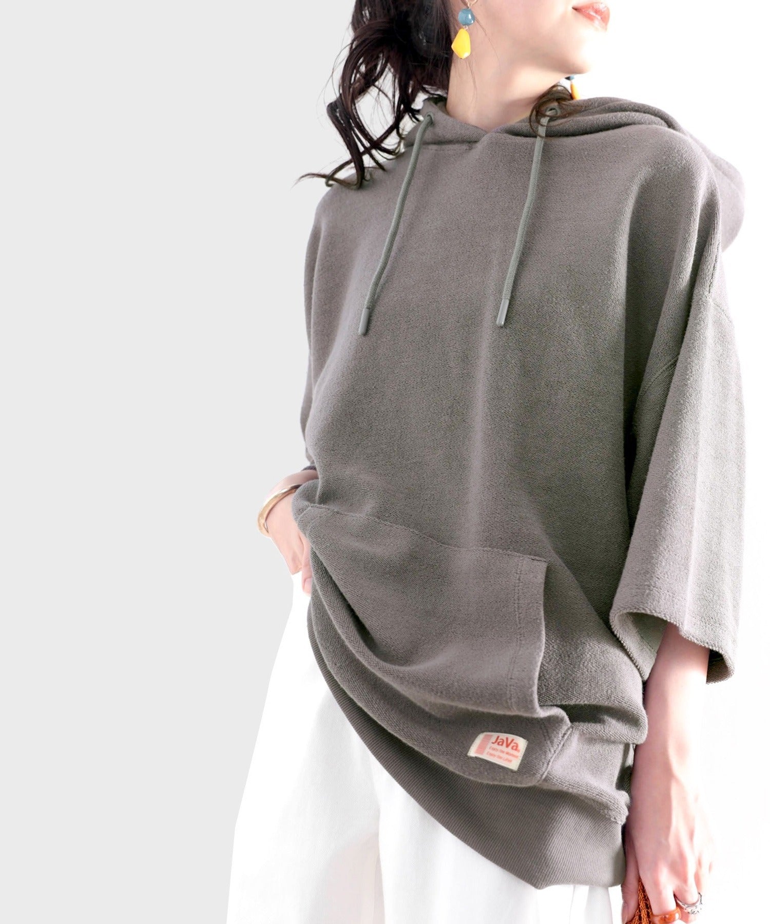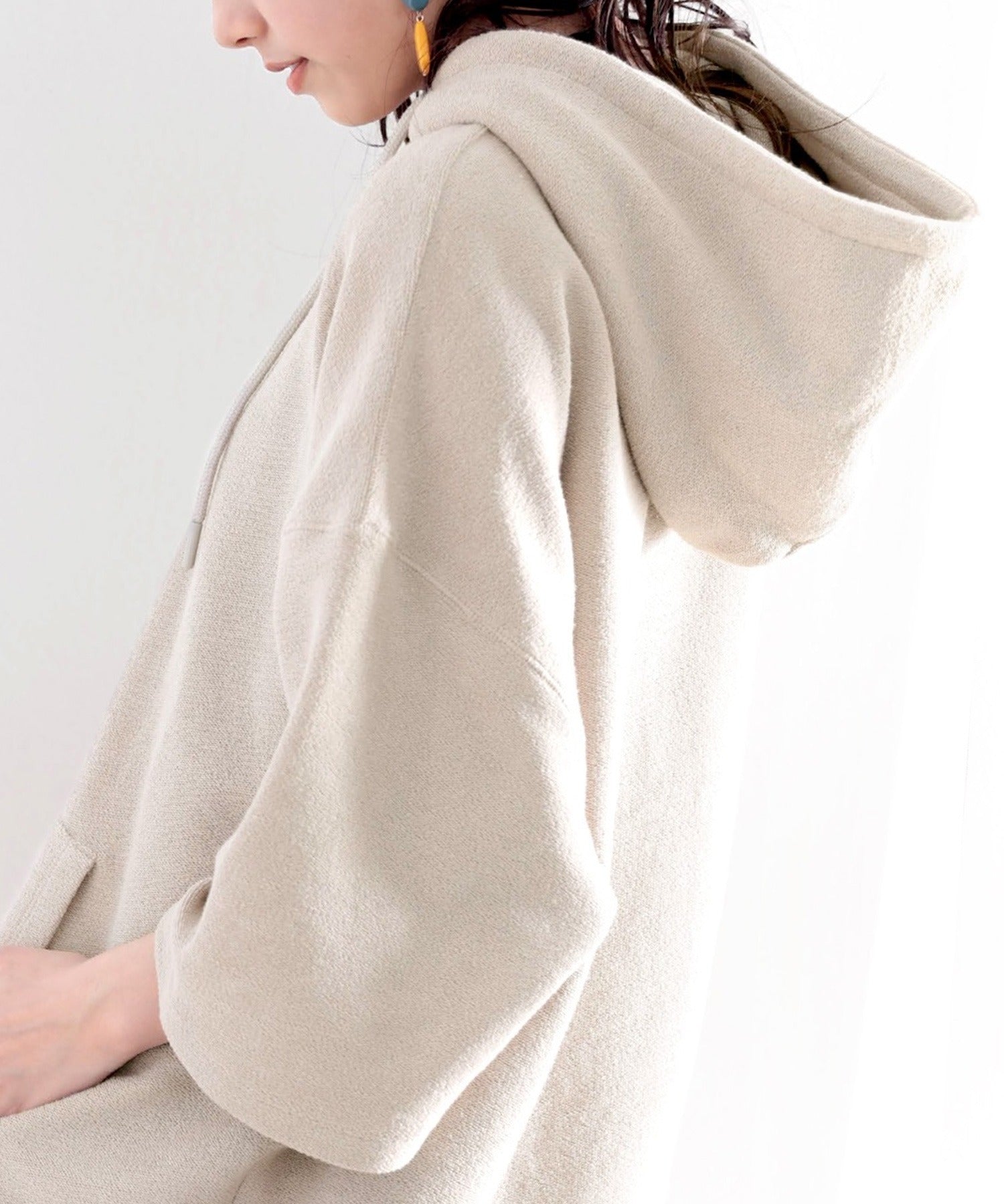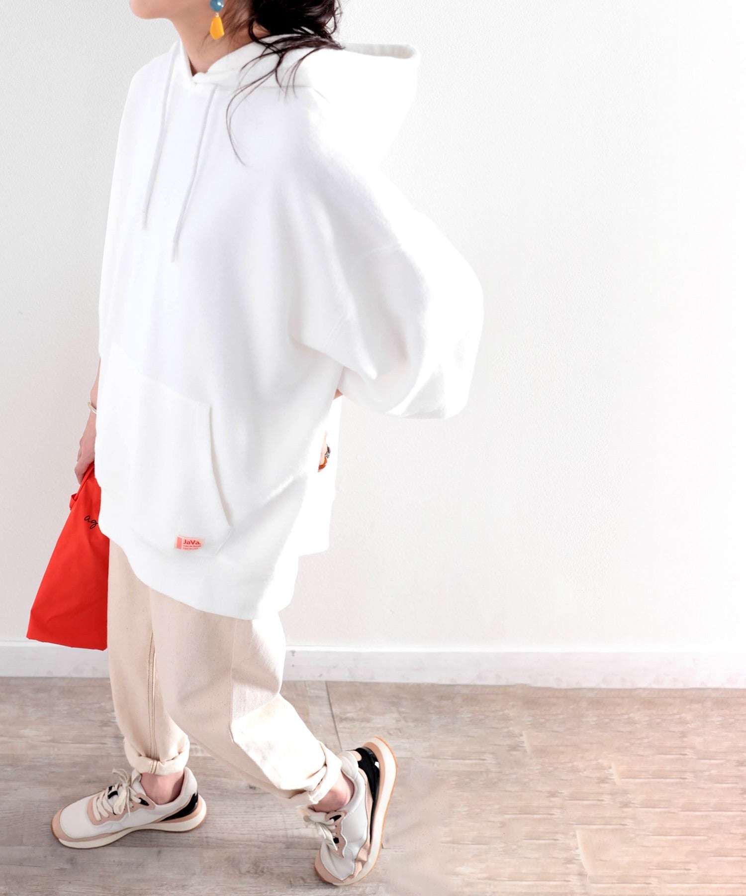 サスティナブル素材、USAコットン&パイル地のプルパーカー。