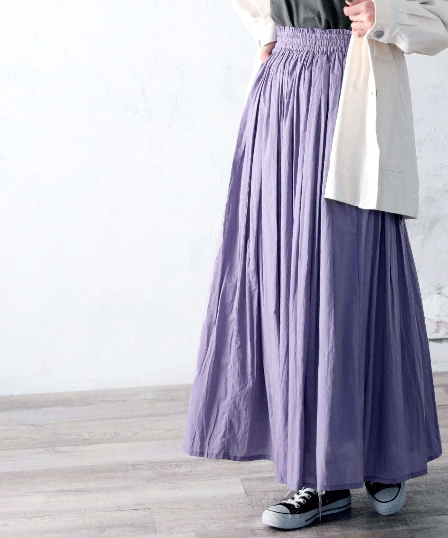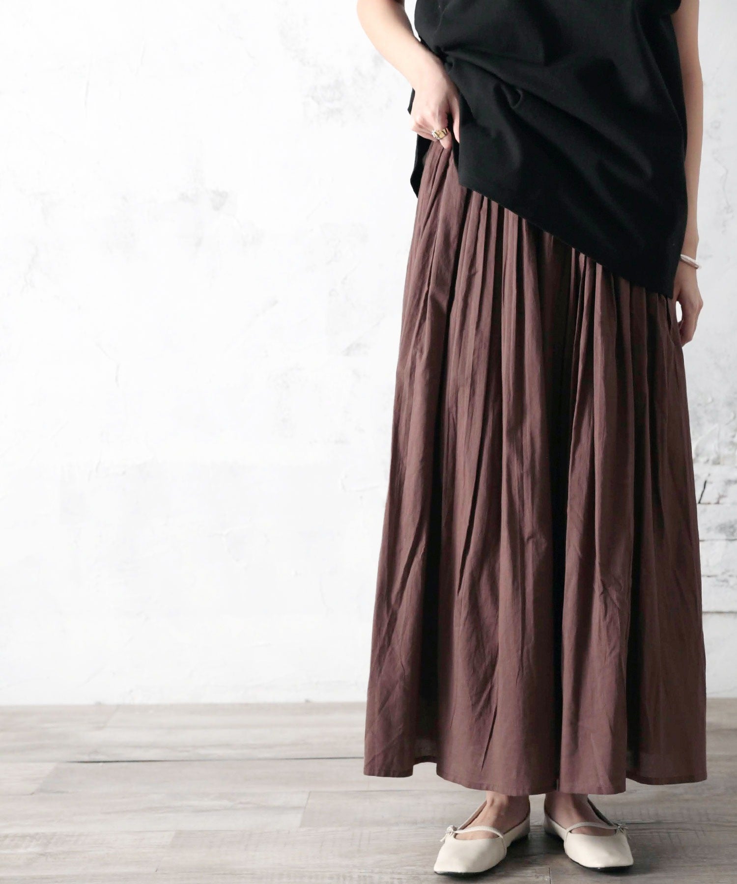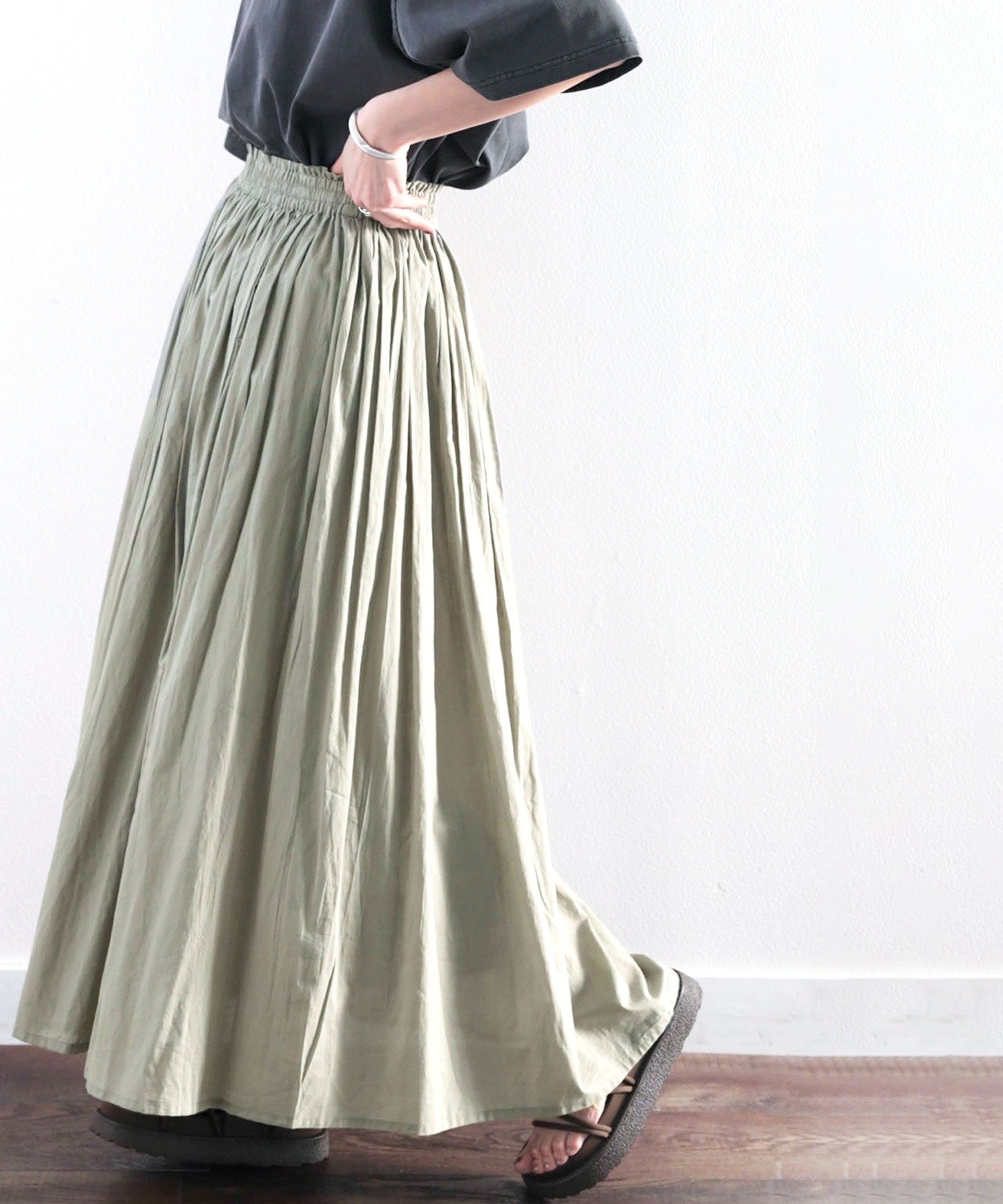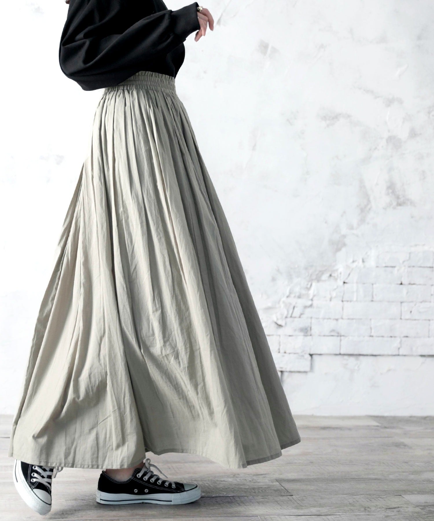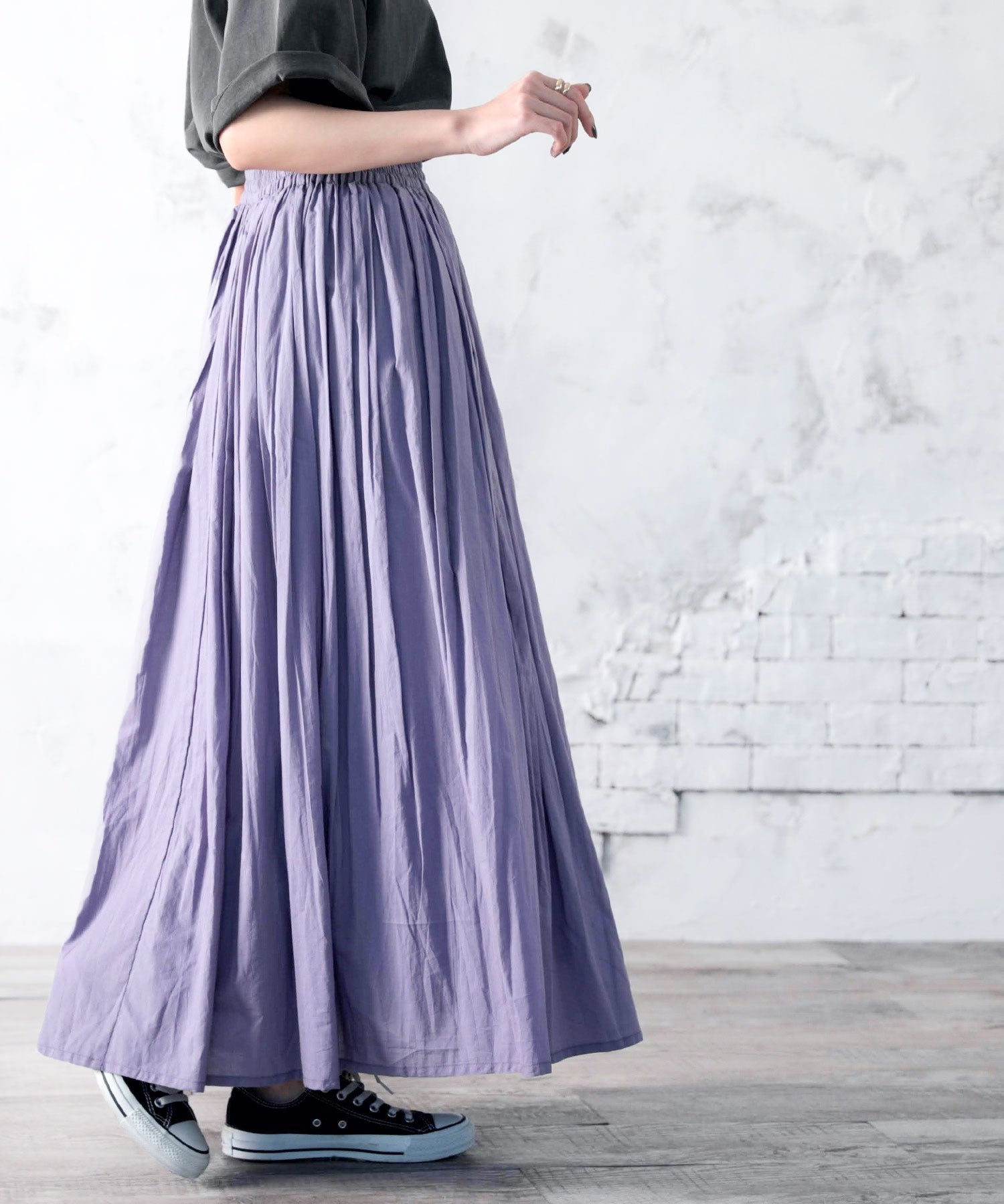 綿100% 風まとう、たっぷりフレアマキシスカート cl12003
