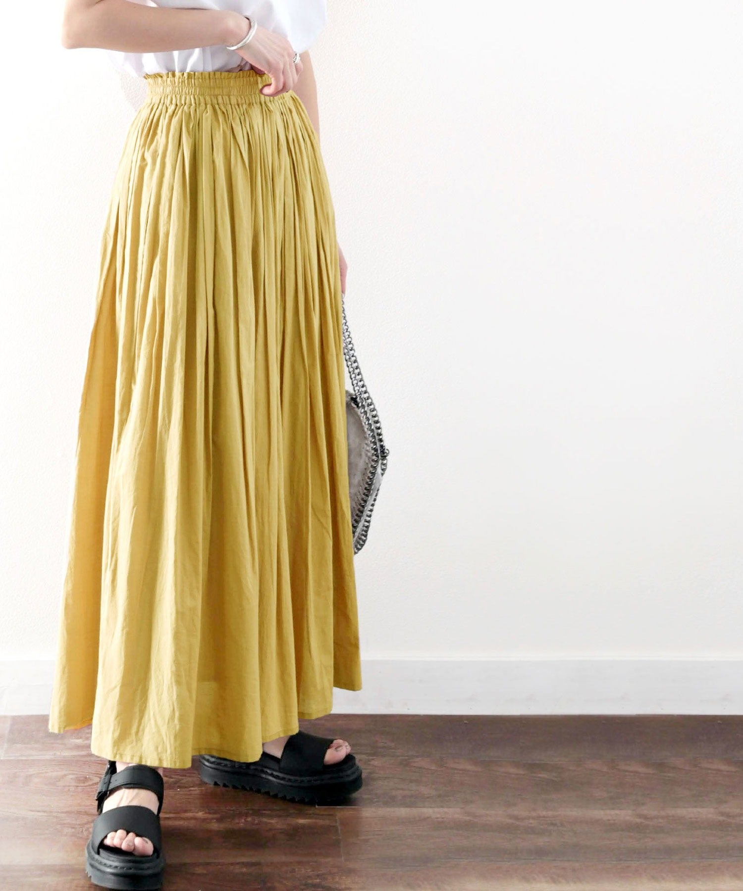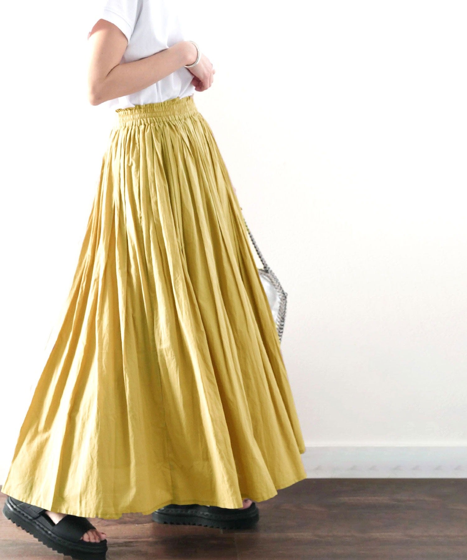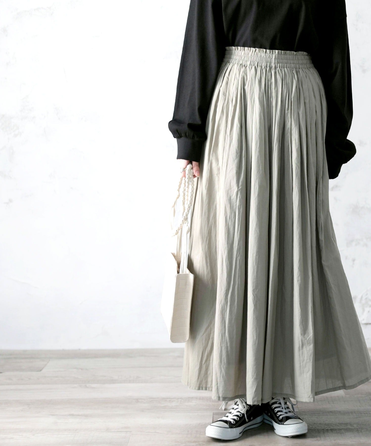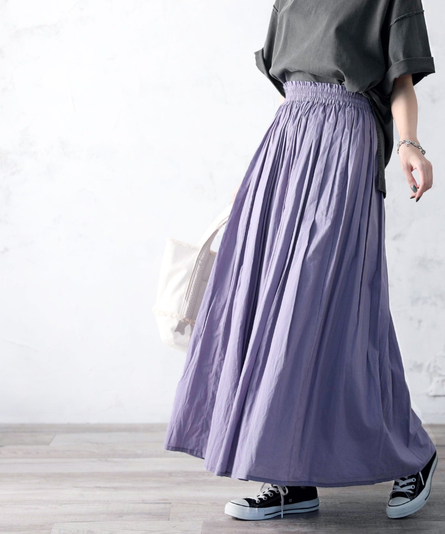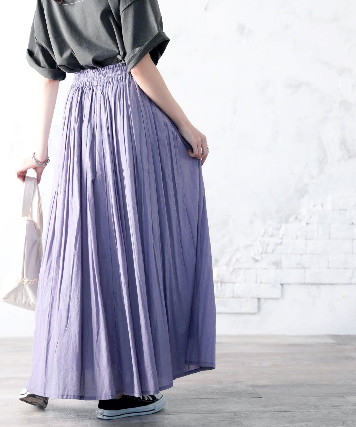綿100% 風まとう、たっぷりフレアマキシスカート cl12003