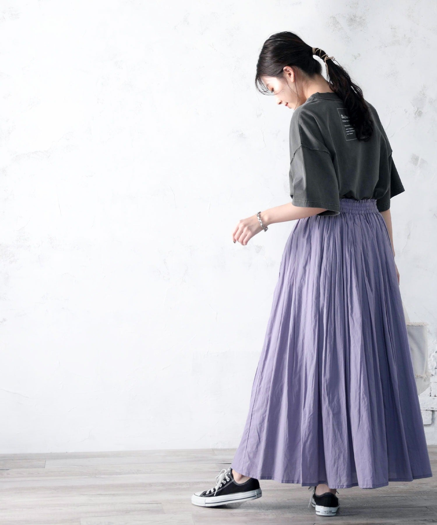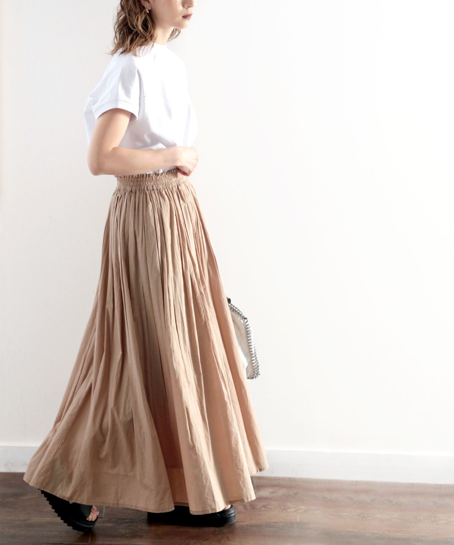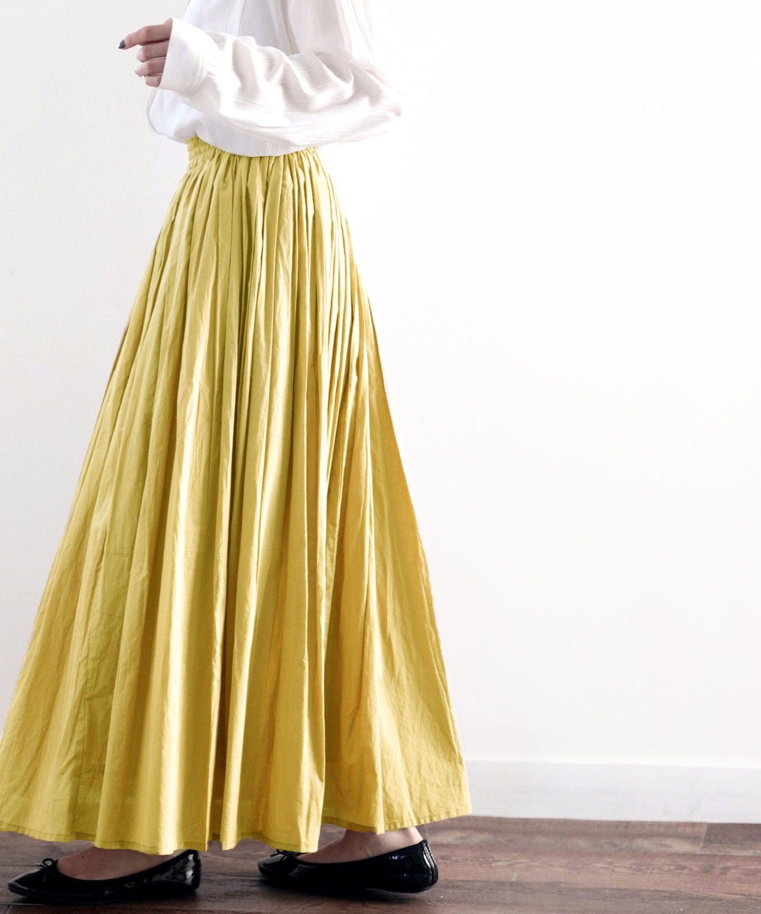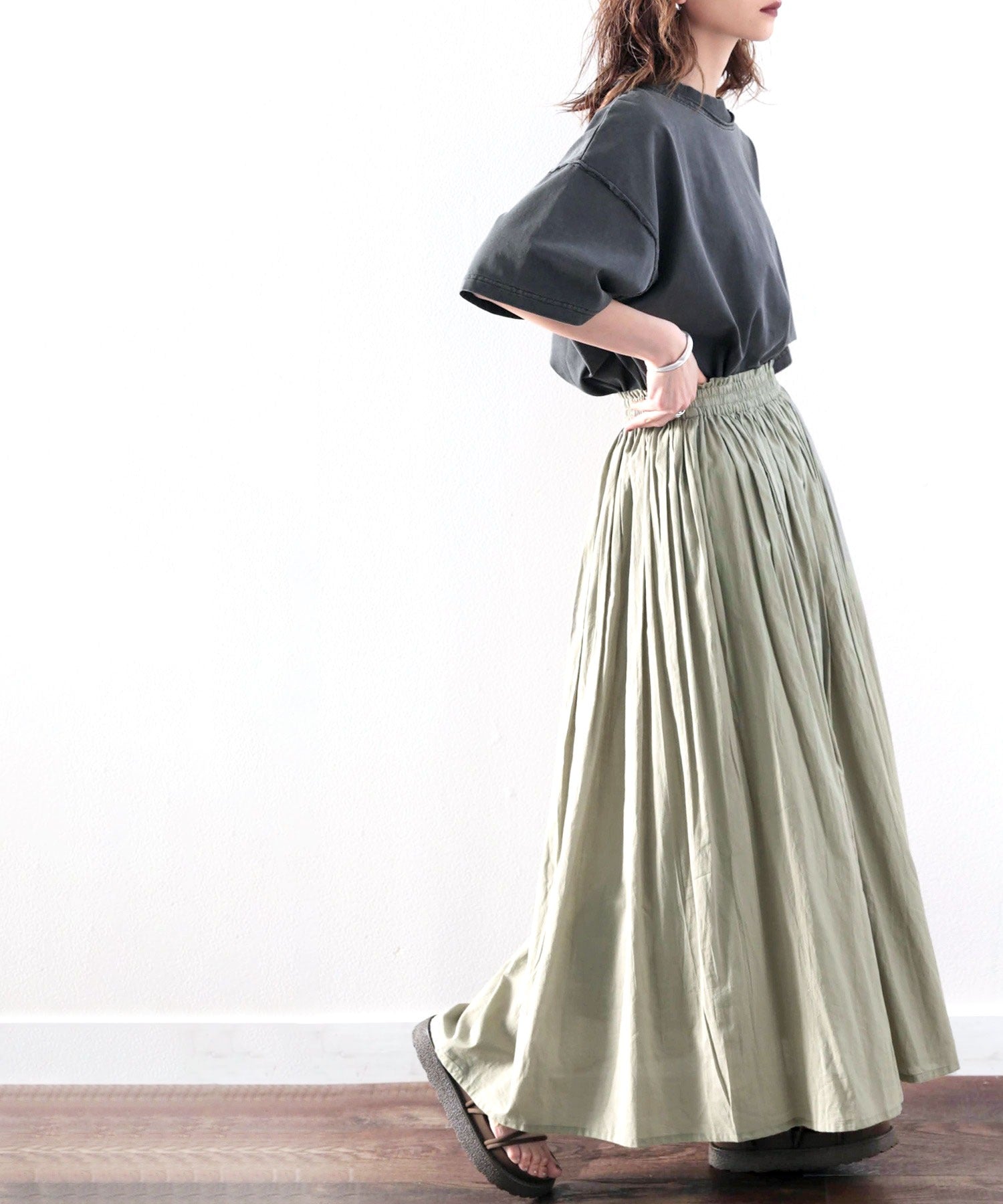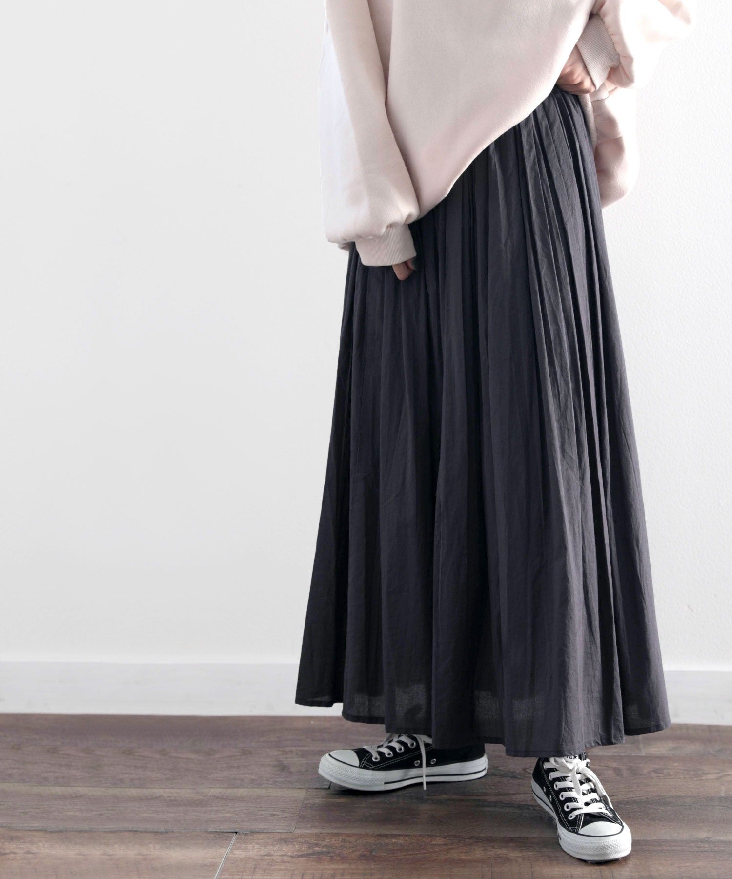 綿100% 風まとう、たっぷりフレアマキシスカート cl12003