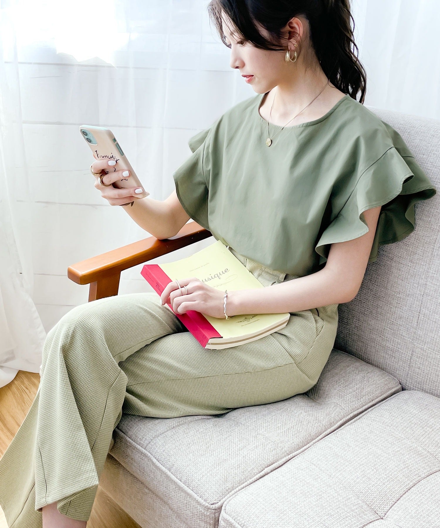 軽やかな生地と落ち着いたカラーで大人っぽさをプラス