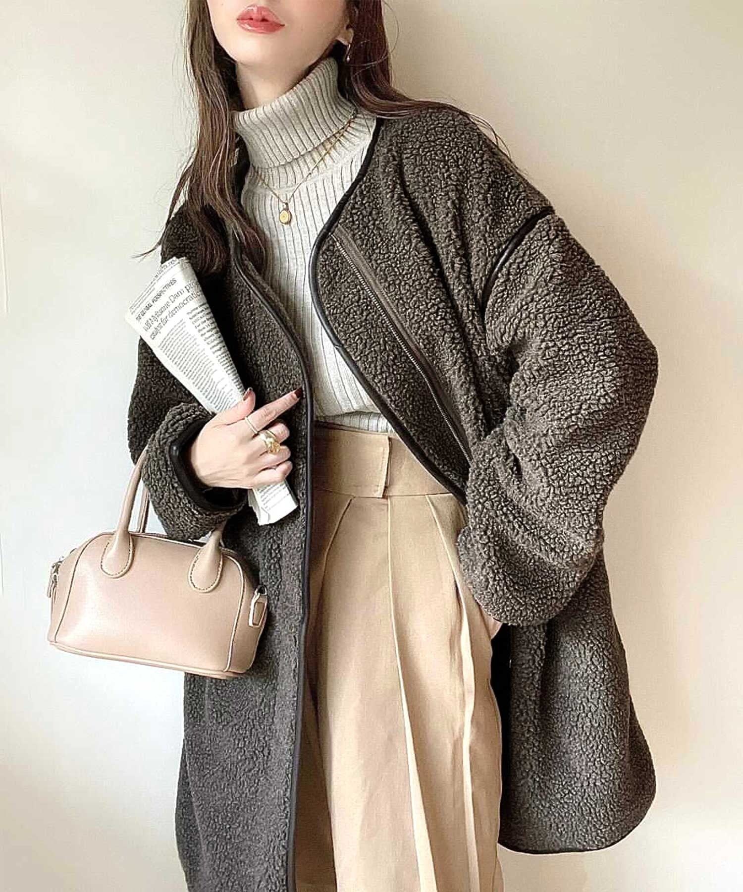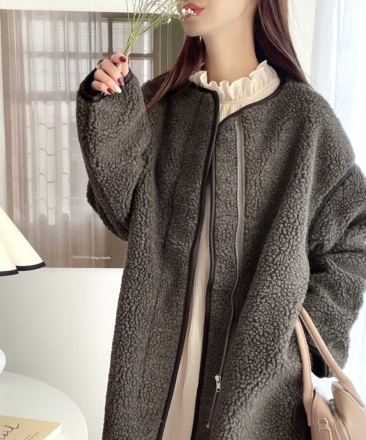 フリースのような軽い素材なので軽やかな着心地のボアブルゾンです。