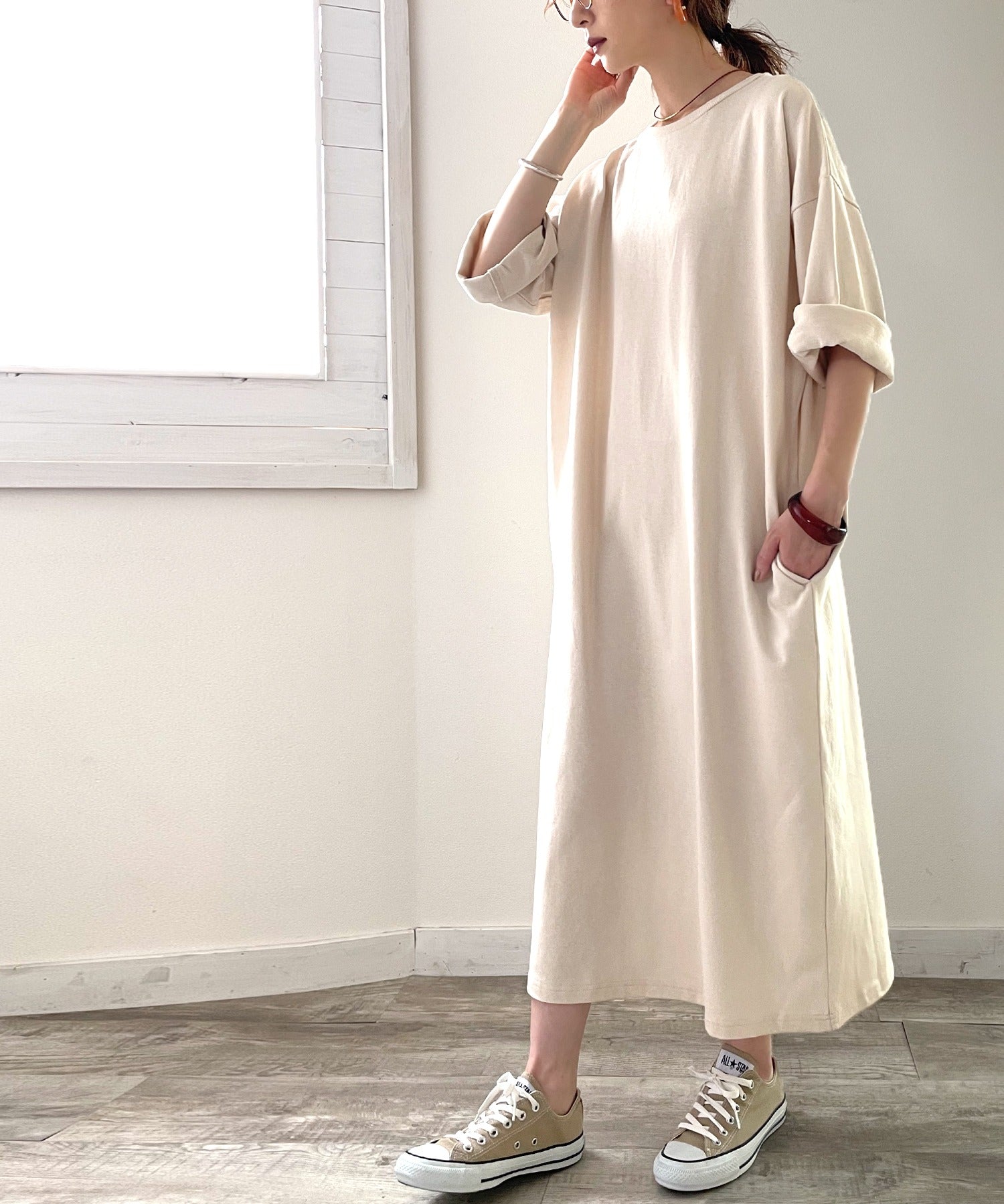 ゆったりとしたシルエットが可愛い無地ロング丈スウェットワンピース