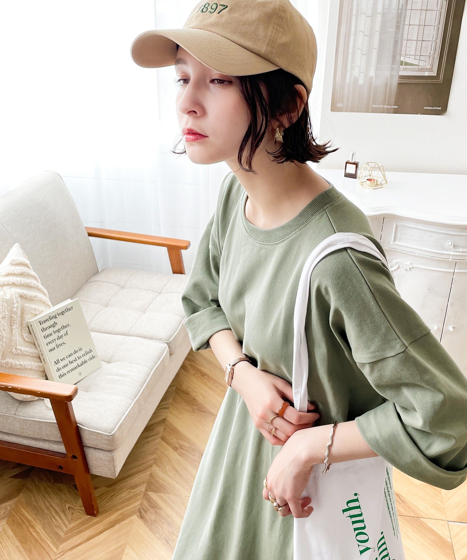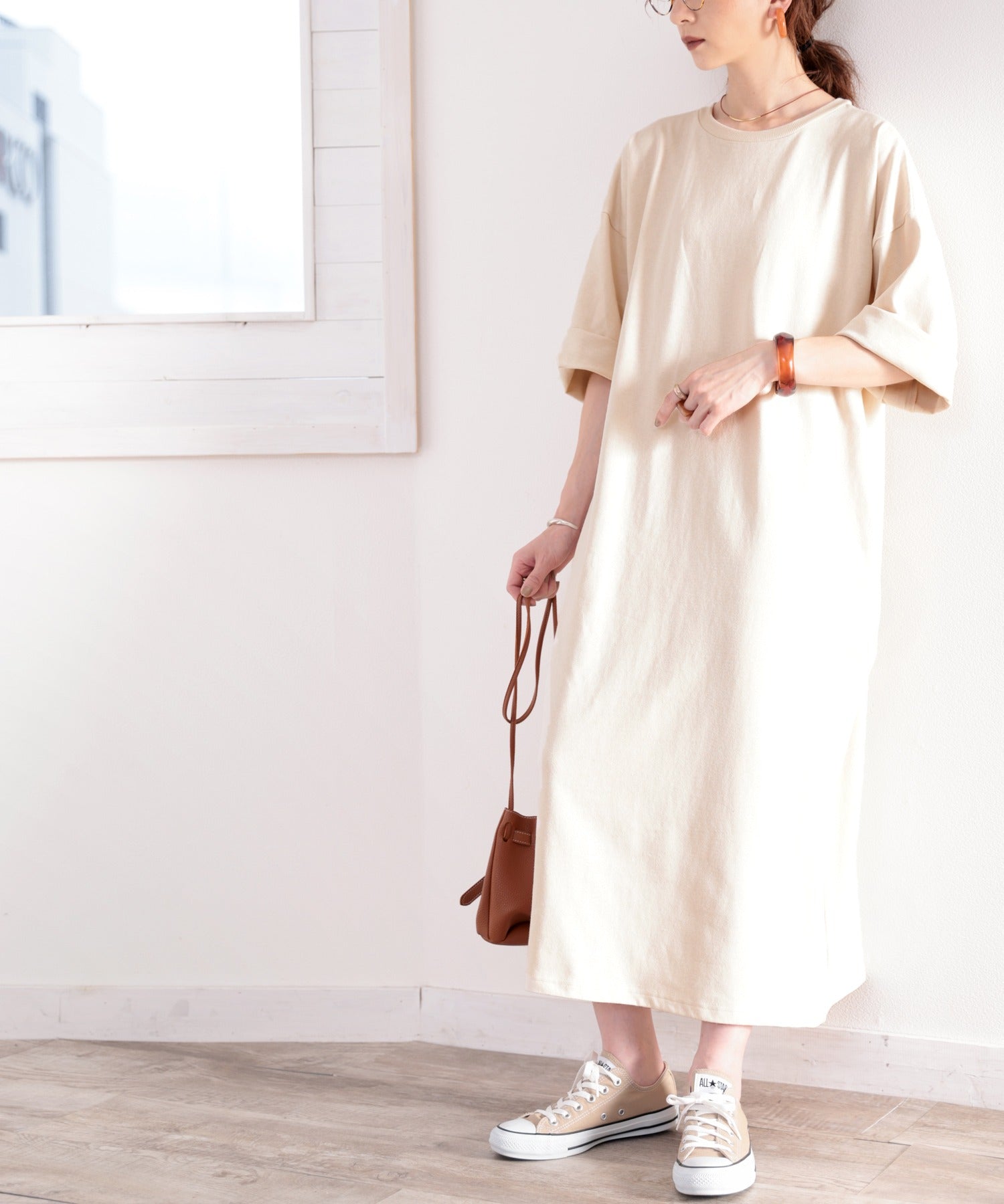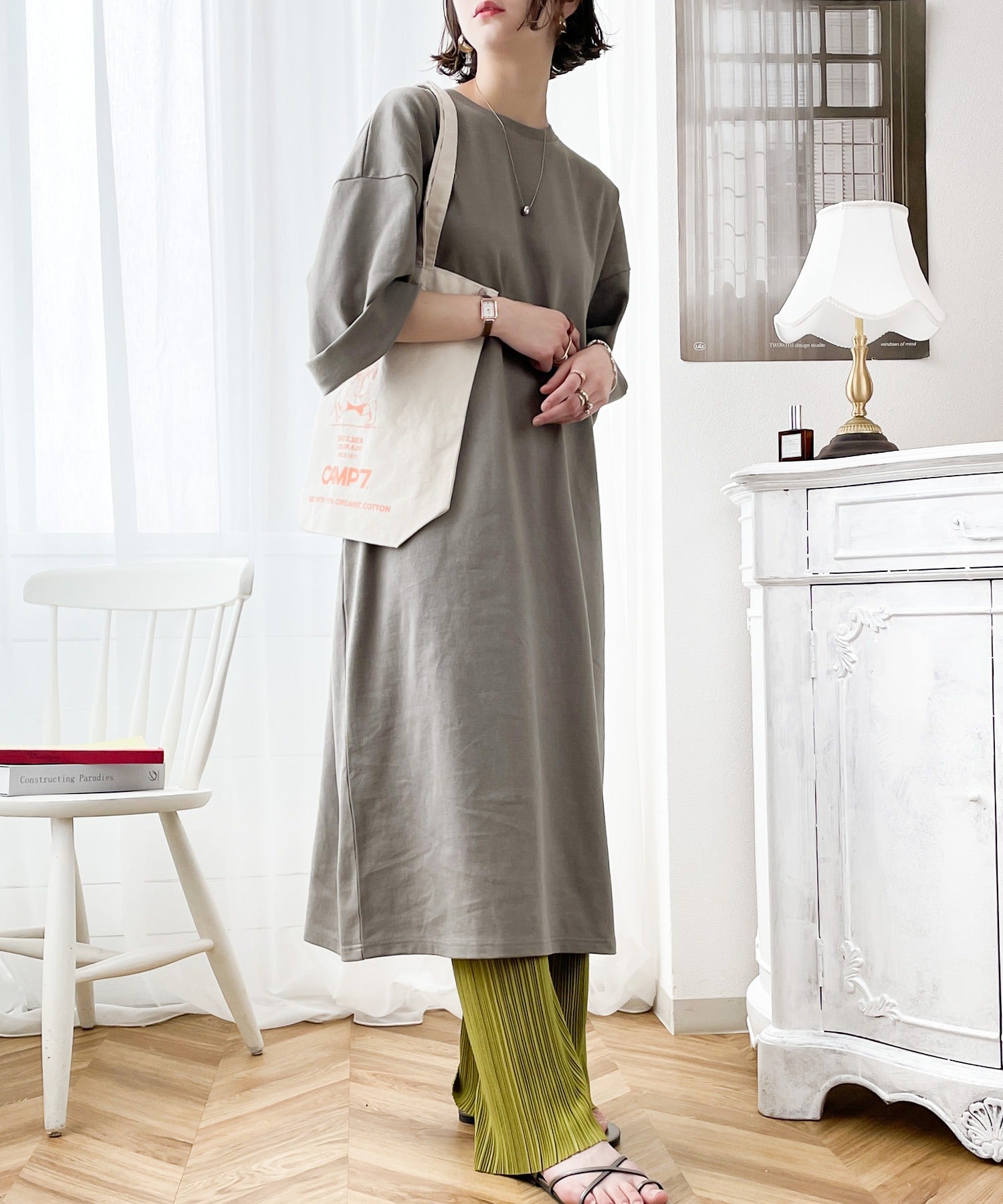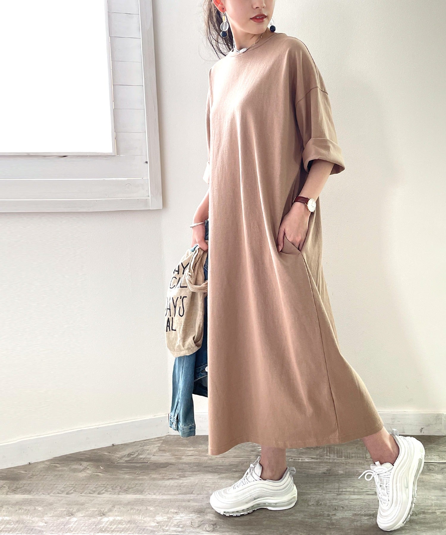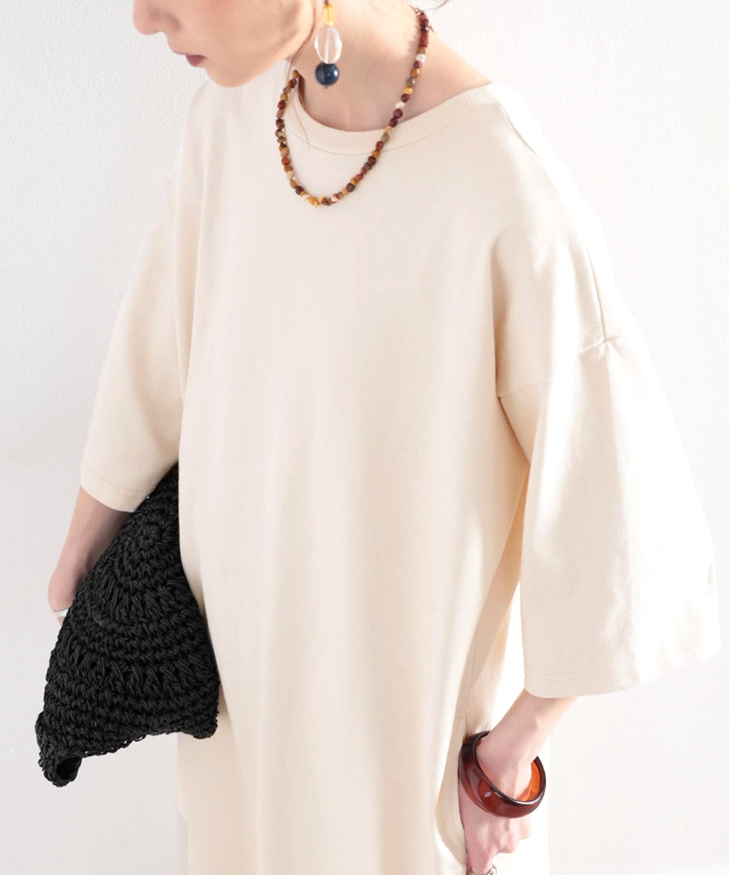 1枚でワンピースとして、ボトムに定番のデニムやパンツと合わせてゆったり着られるアイテム。