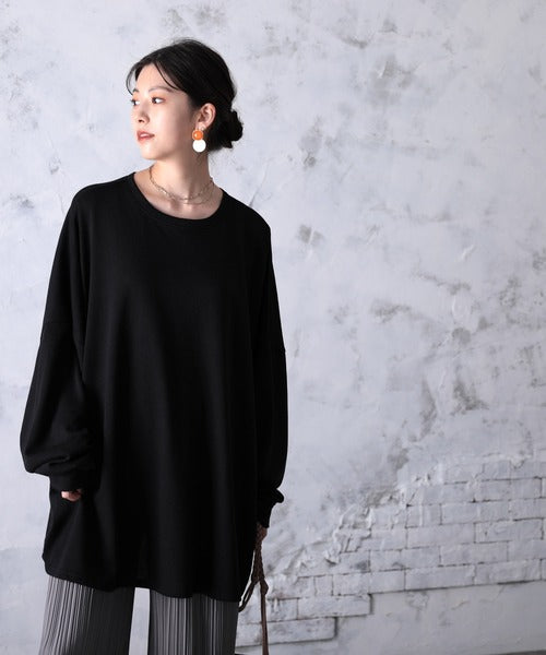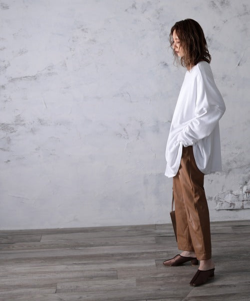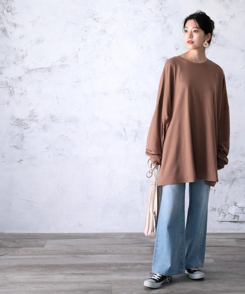身体のラインを拾わないビッグシルエットと華奢見せするゆる袖で、