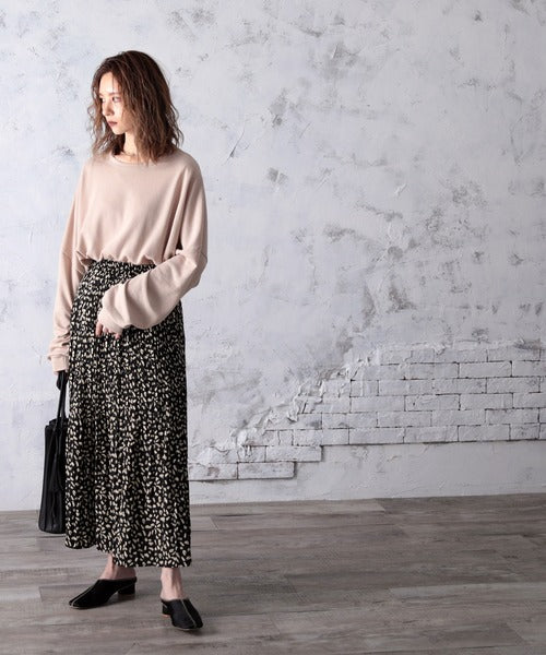 バックにさりげなくあしらったプリントの、シンプルな長袖プルオーバーで一気にトレンド顔に。
