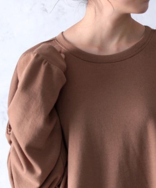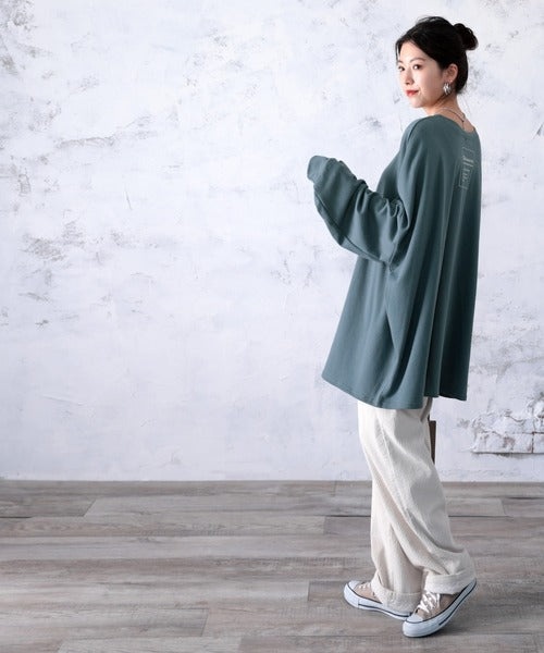 ゆったり身幅にたっぷりのボリュームスリーブで、トレンド感があり可愛いシルエット。