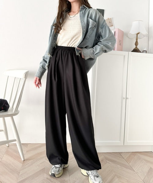 ウエストはゴム仕様でストレスフリーな履き心地ながら、