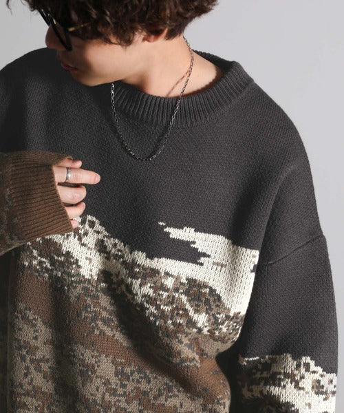 着こなしにアクセント! ジャガード風景柄ニット cm1050134