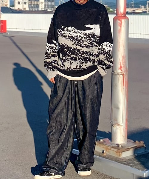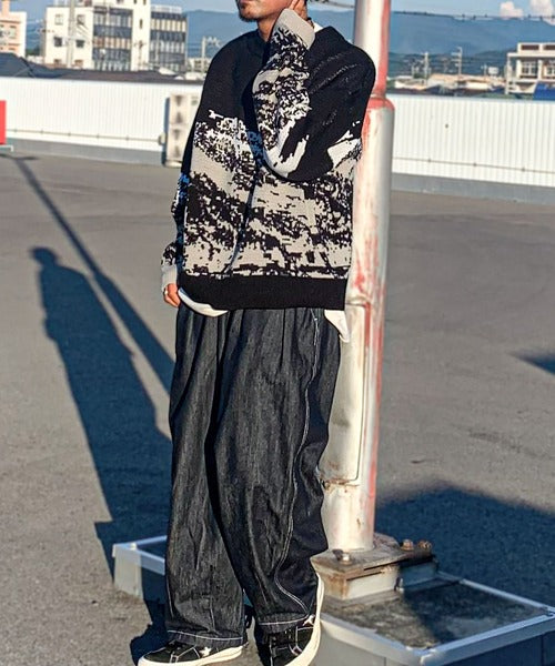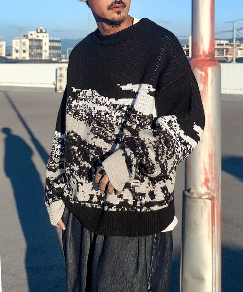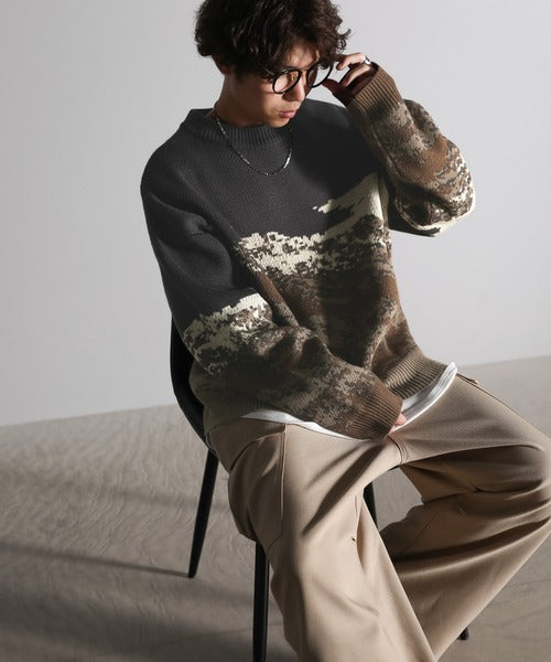 《レディースも着れちゃうジャガード風景柄ニット。》