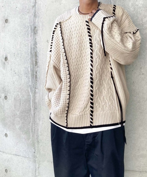 シンプルコーデを一新。2wayクレイジーステッチクルーネックニット cm1260049