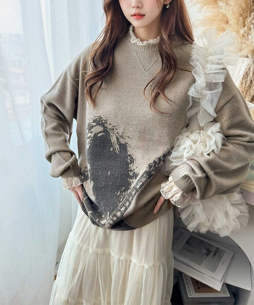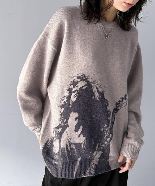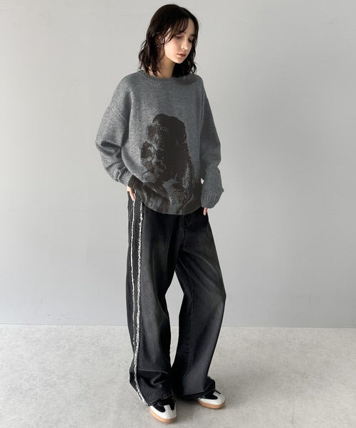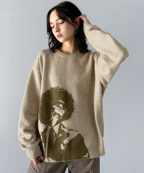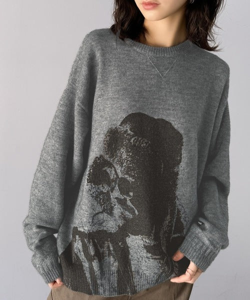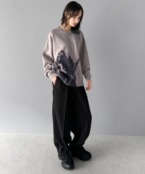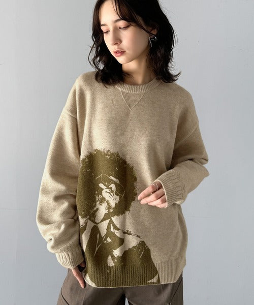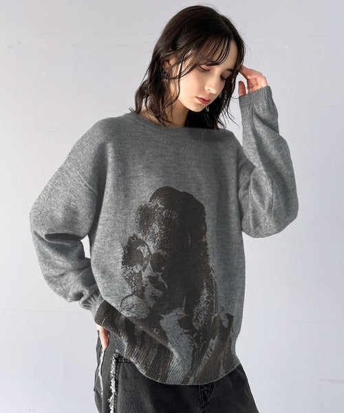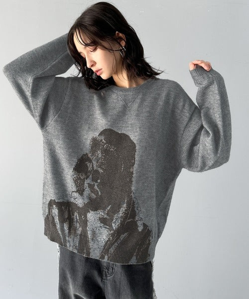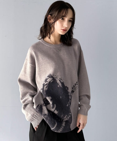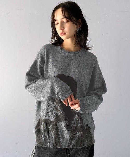 大胆なグラフィックが存在感をプラス。人柄シルエットプリントニット cm1260291
