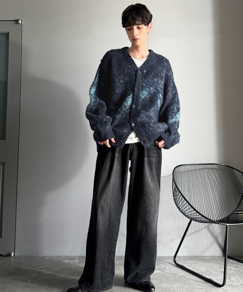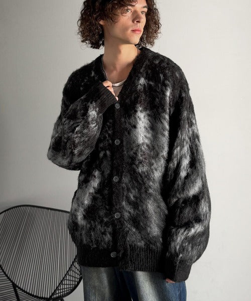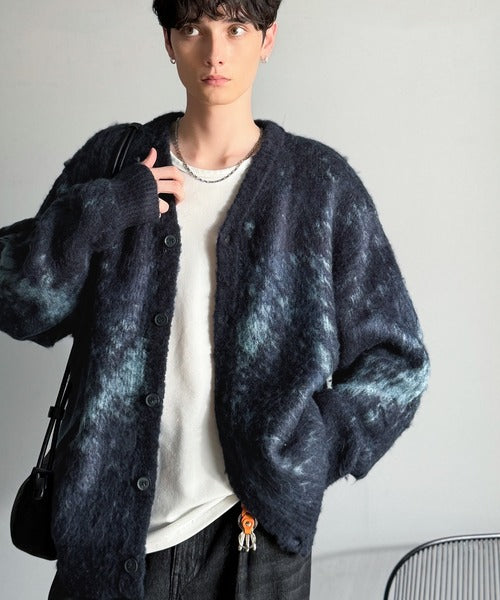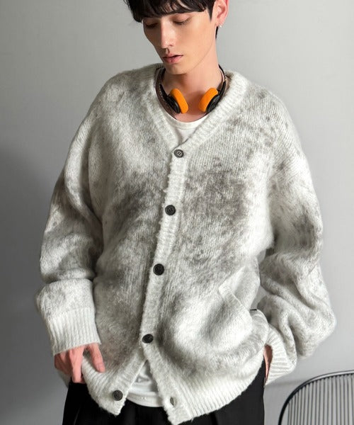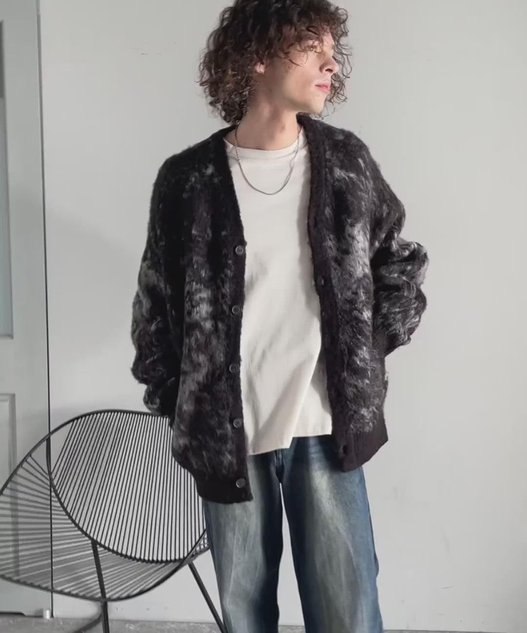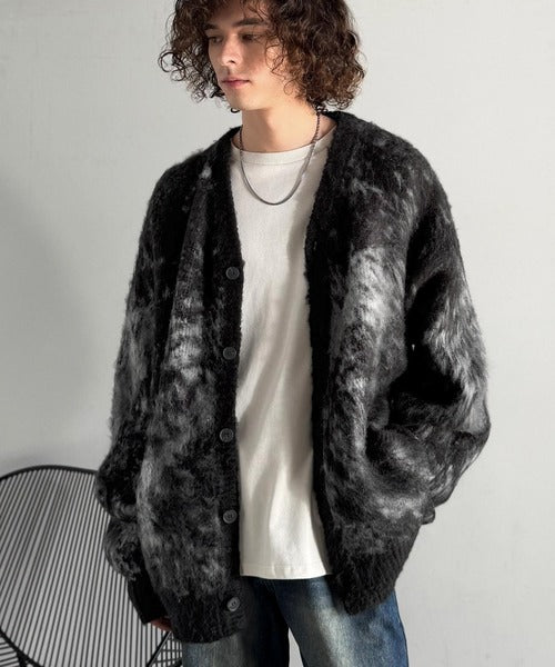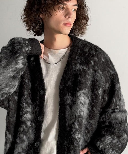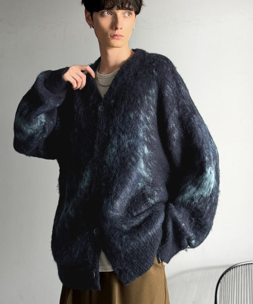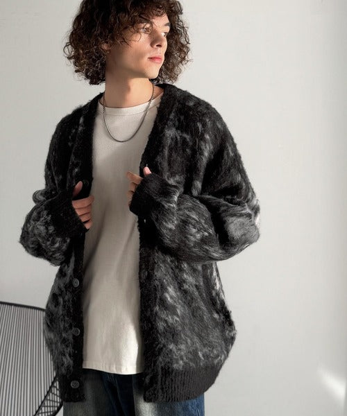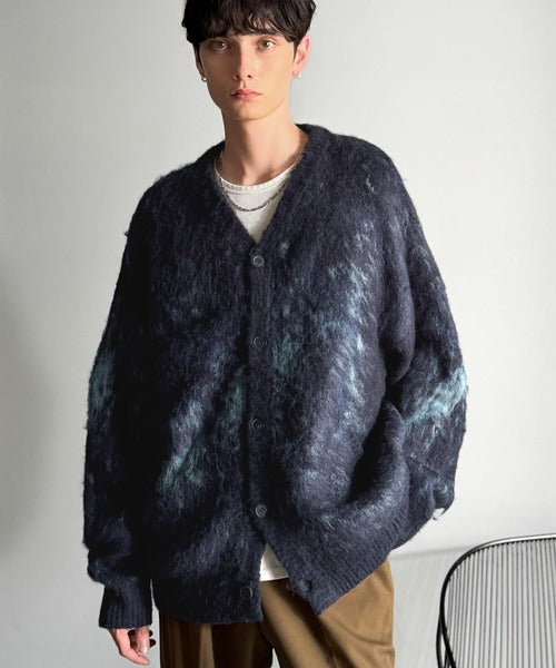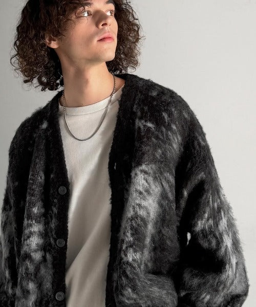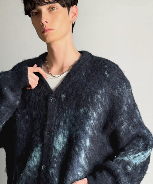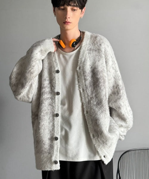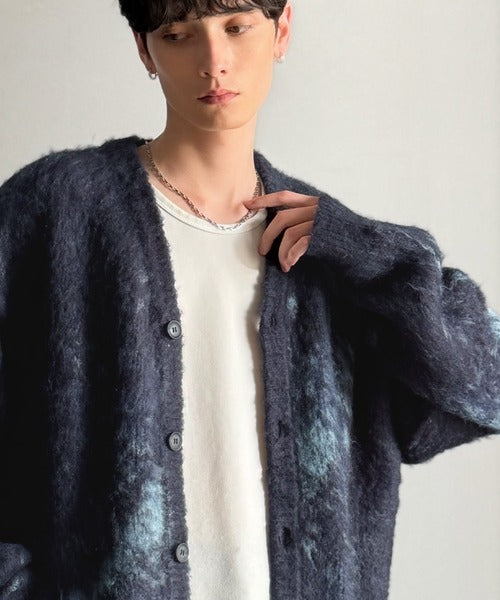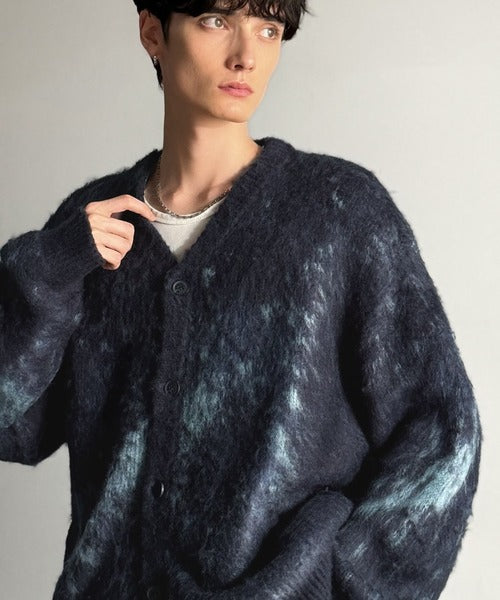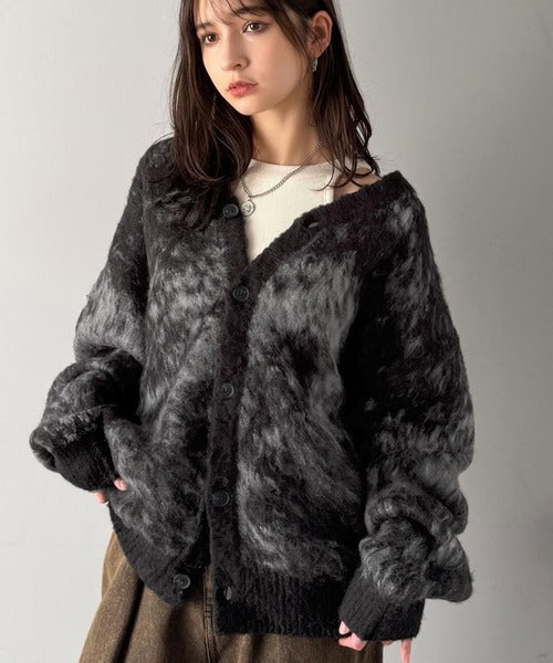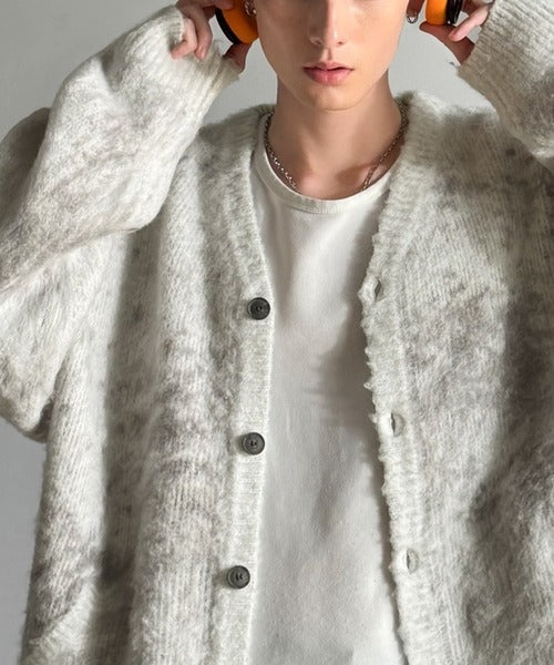 「Mohair-Like Shaggy Knit V-Neck Cardigan/モヘアライクシャギー素材Vネックカーディガン」