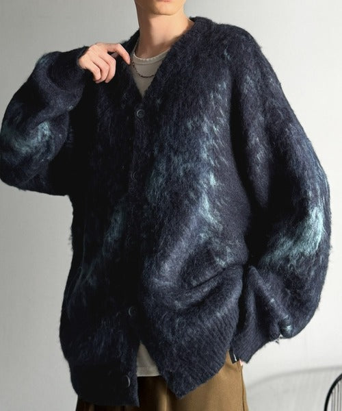 「Mohair-Like Shaggy Knit V-Neck Cardigan/