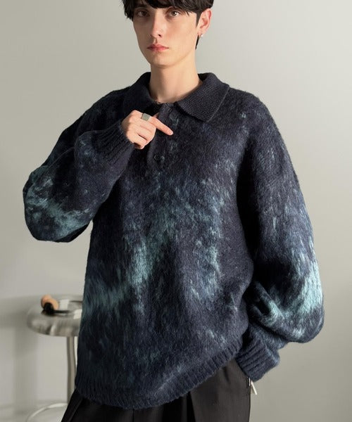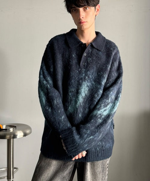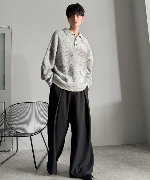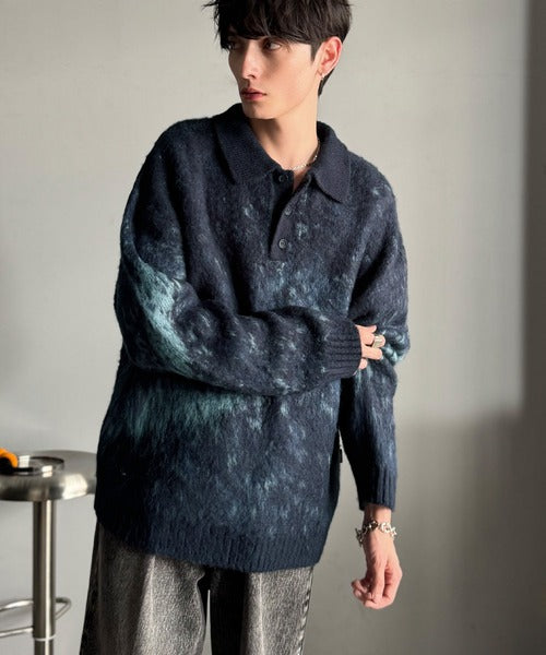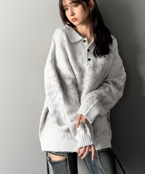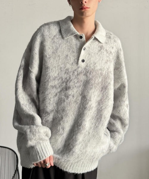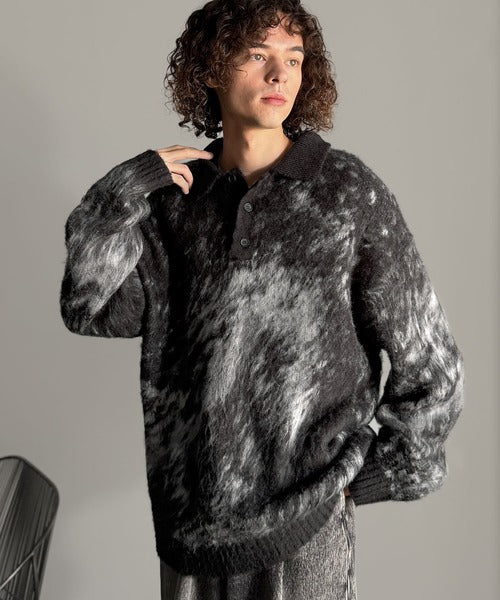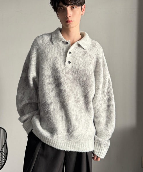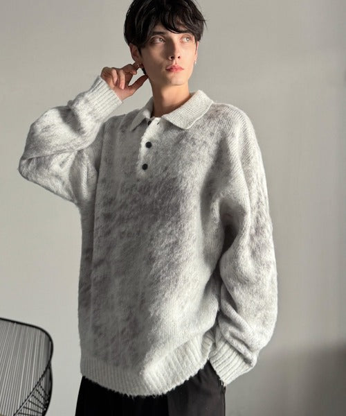 「モヘアライクシャギー素材ニットポロシャツ/Mohair-Like Shaggy Knit Polo Shirt」