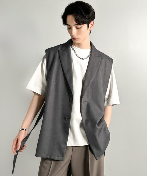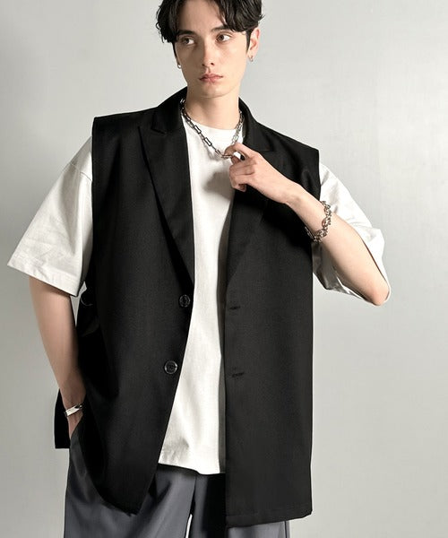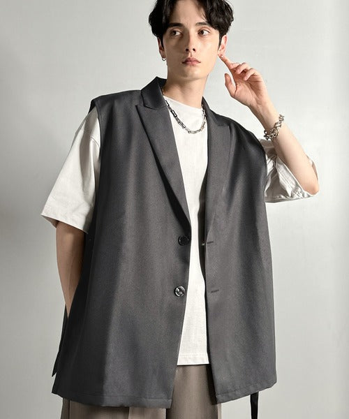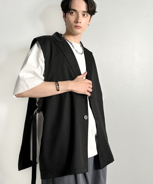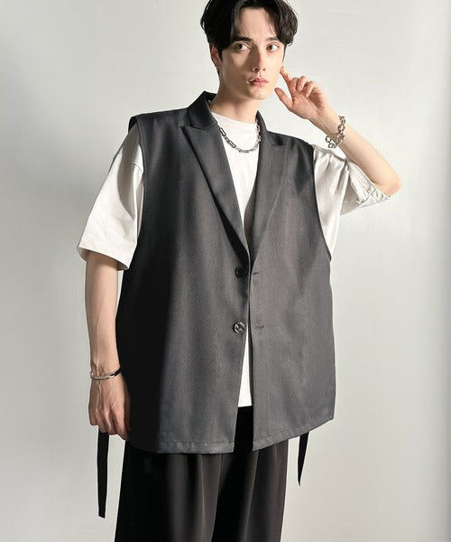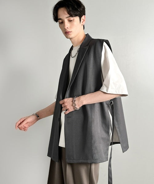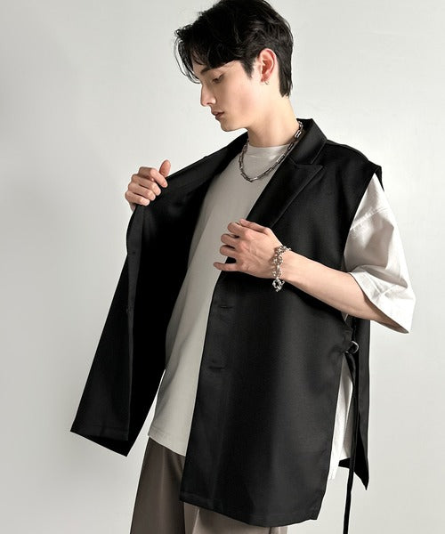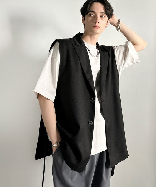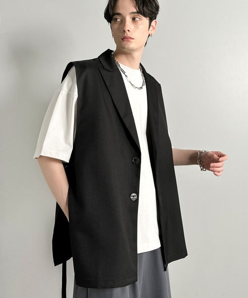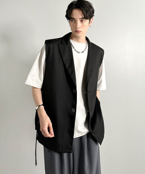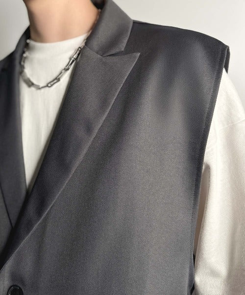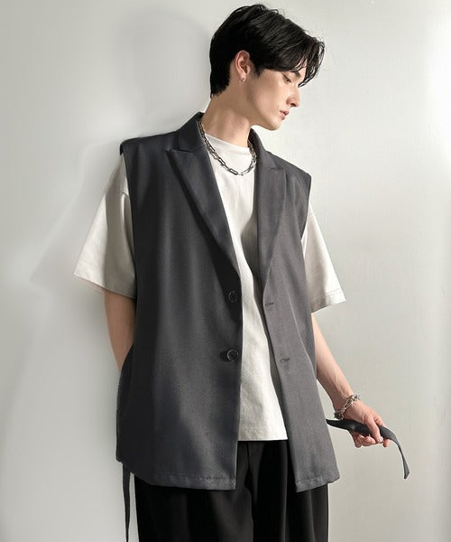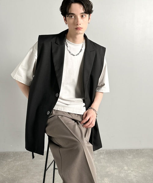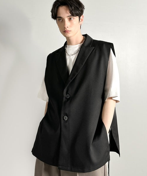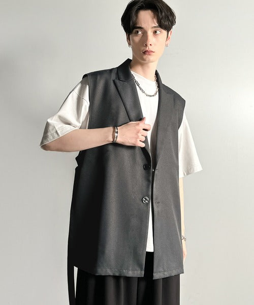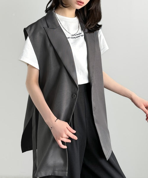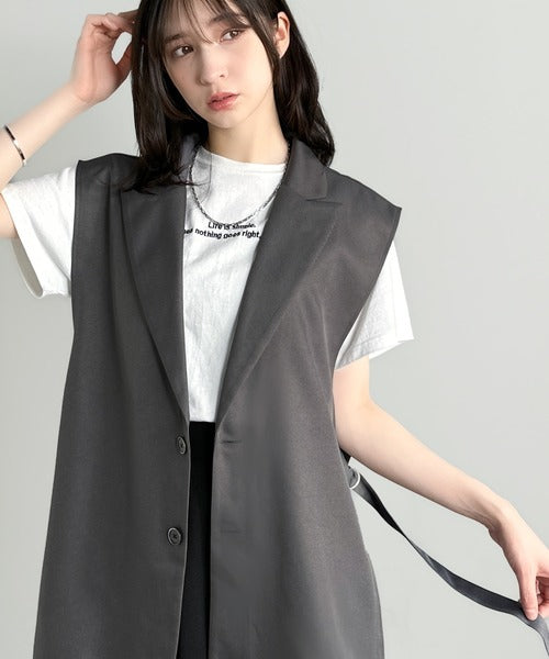 「日常をアップデート。」ピークドラペル仕様エレガントセミロングベスト/Peak Lapel Elegant Semi-Long Vest co1010009