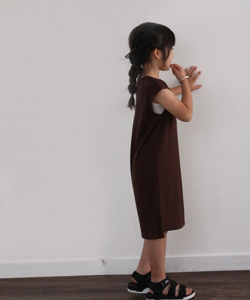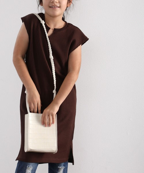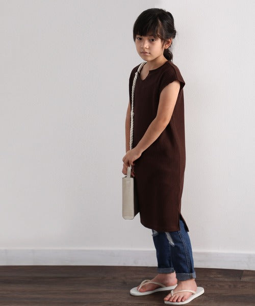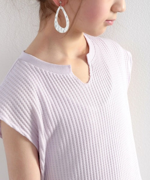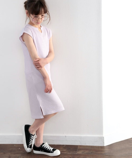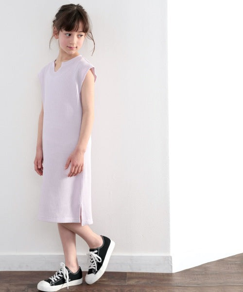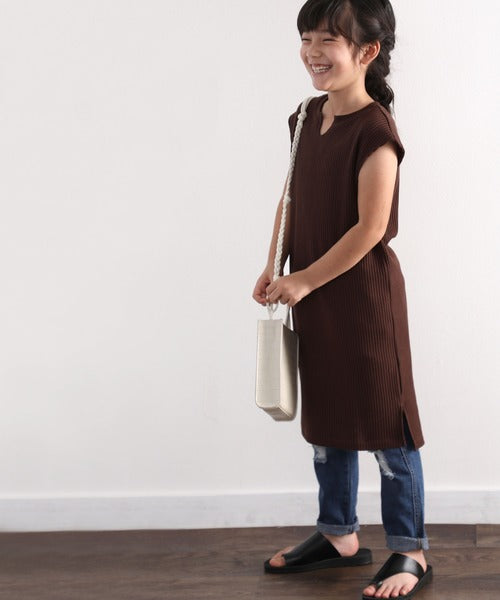 【family+】【親子おそろい】キッズ サーマルでさらり。キーネックロングワンピース ctl004