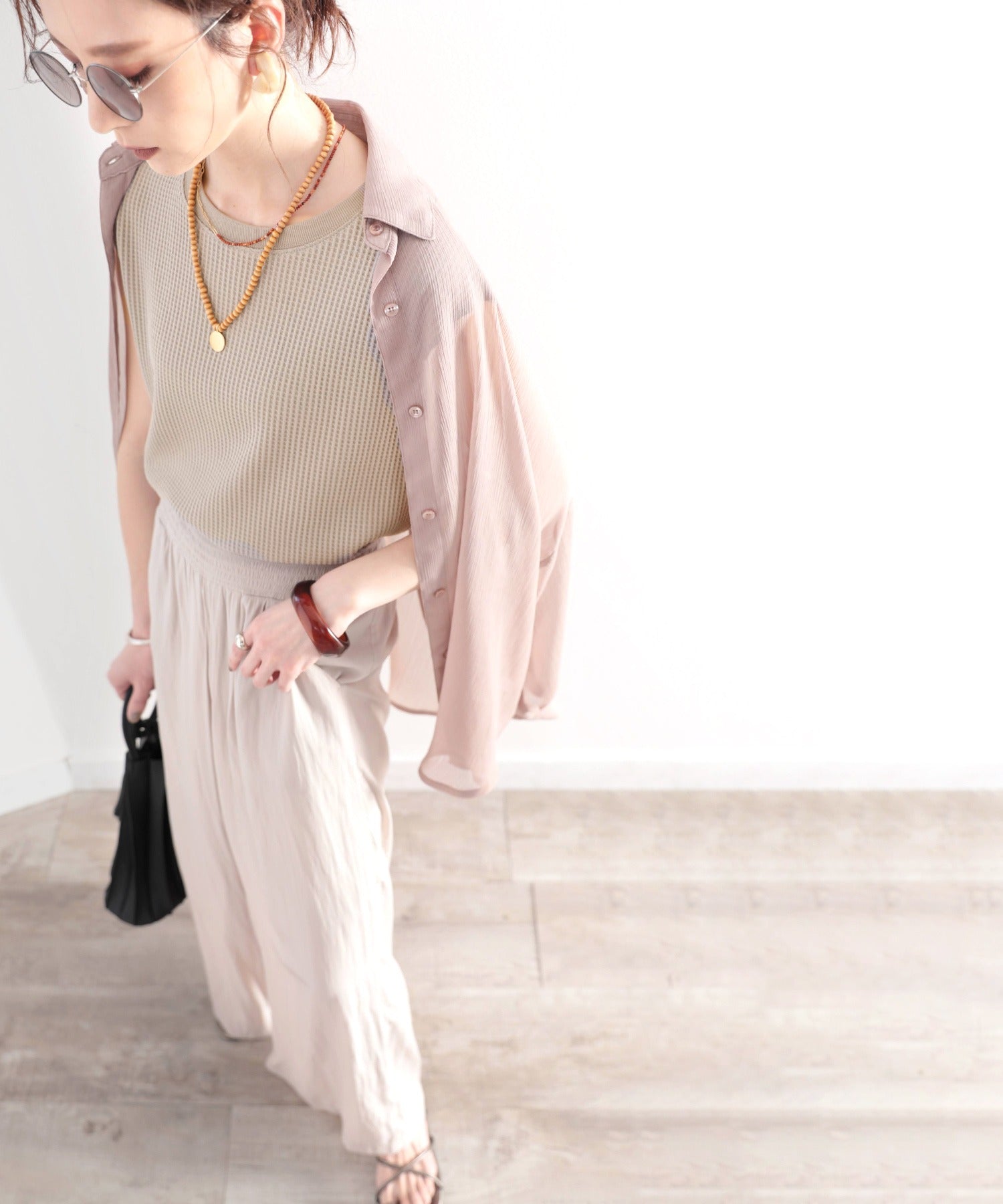 柔らかなワッフル生地はトレンド感を出しながら、カジュアルにもきちんとにも対応できる優秀アイテム。