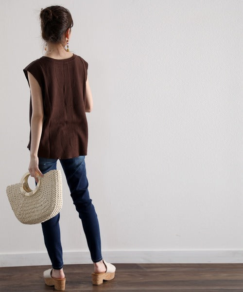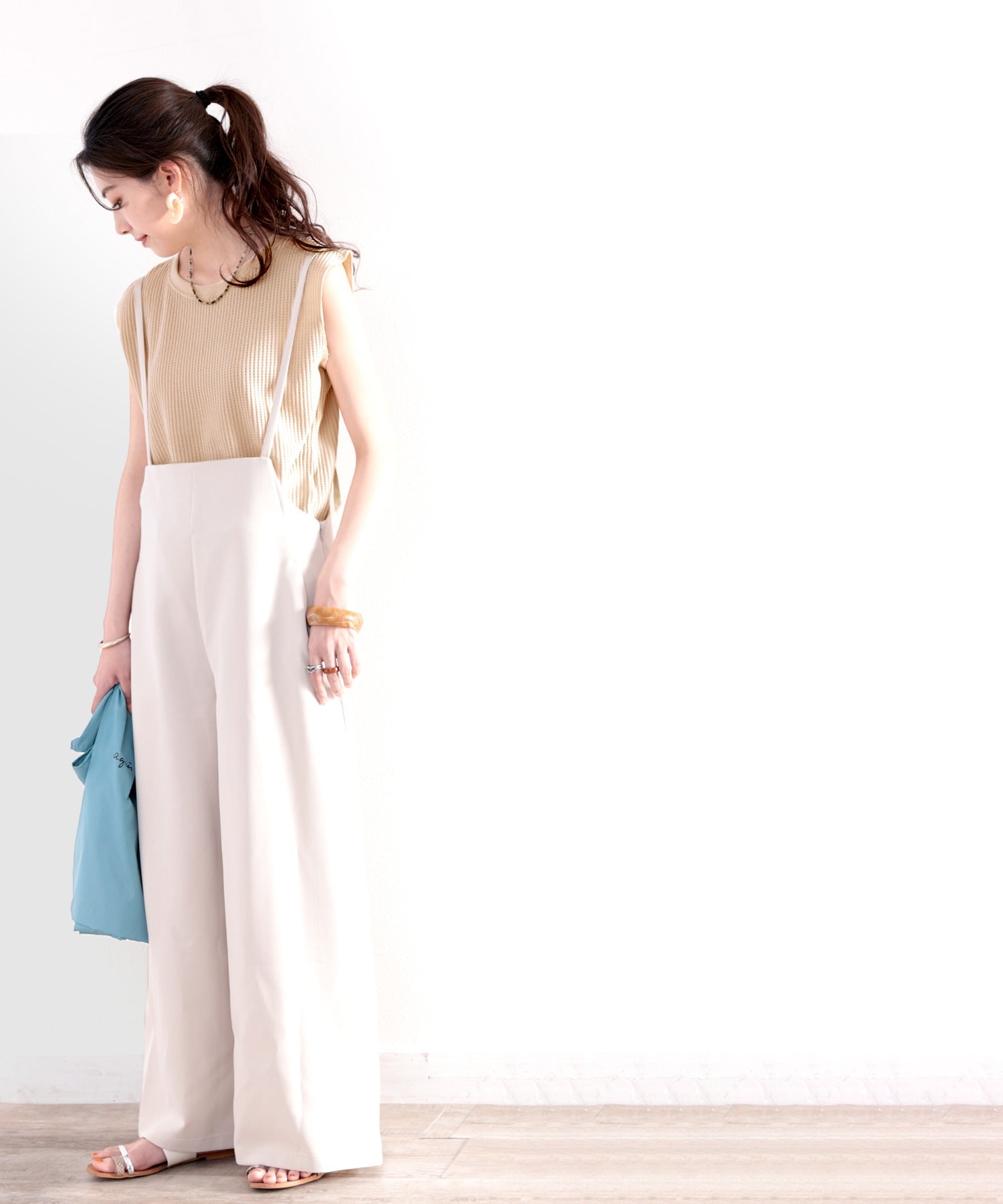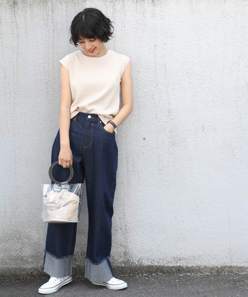 シンプルなトップスなので、どんなボトムスとも相性バッチリ。