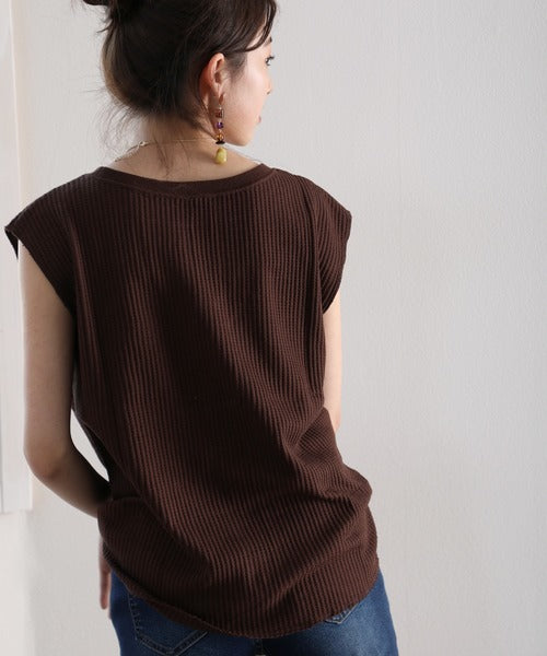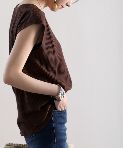 【family+】ワッフル地 無地ショート丈フレンチスリーブTシャツ(半袖) ctl005