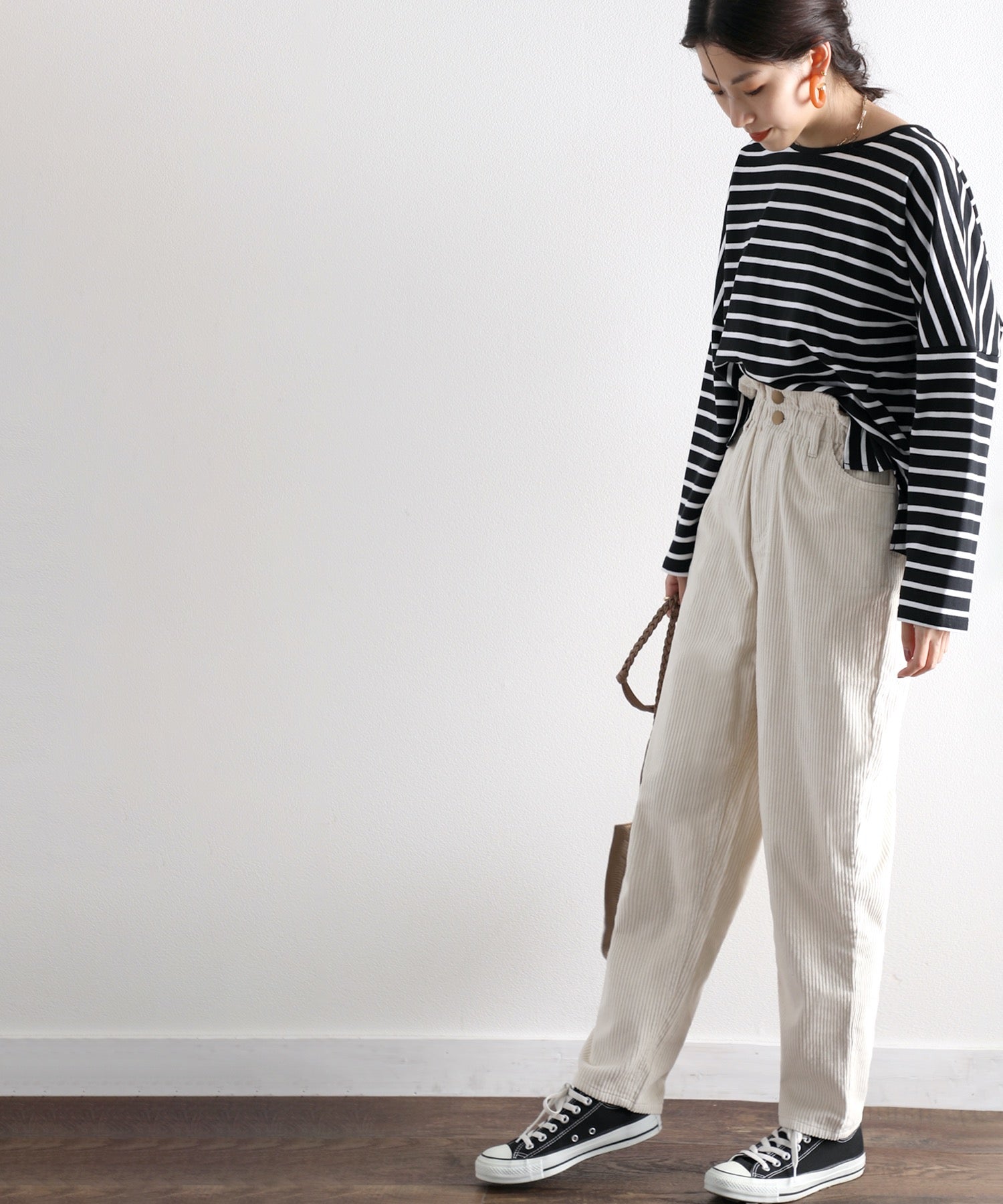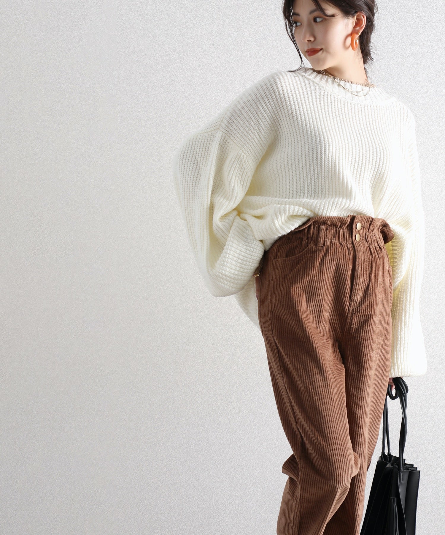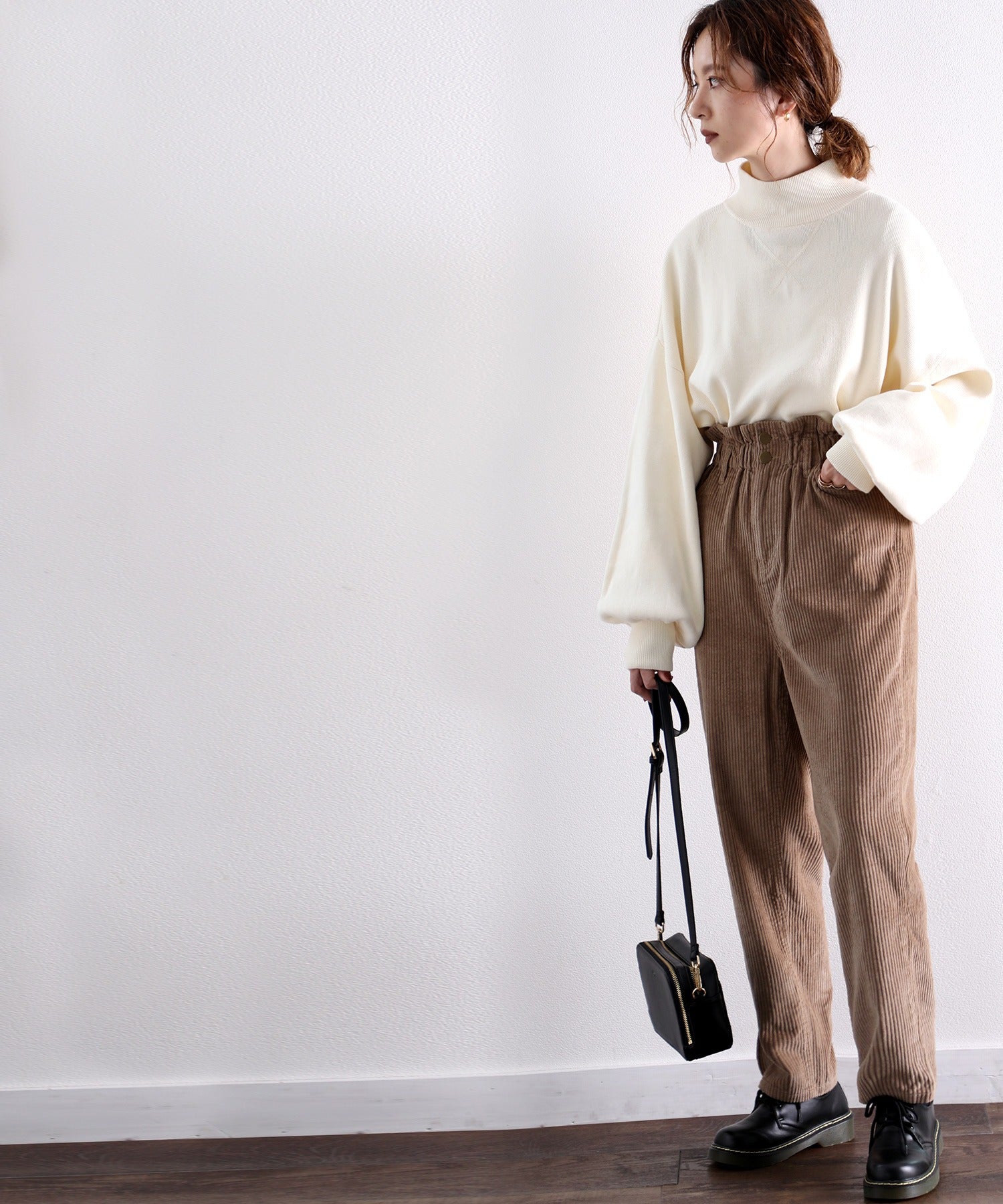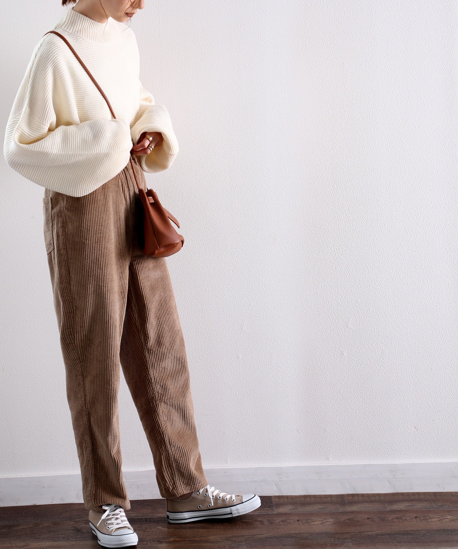 バルーンシルエットを活かすコンパクトなサイズ感のトップスも好相性。