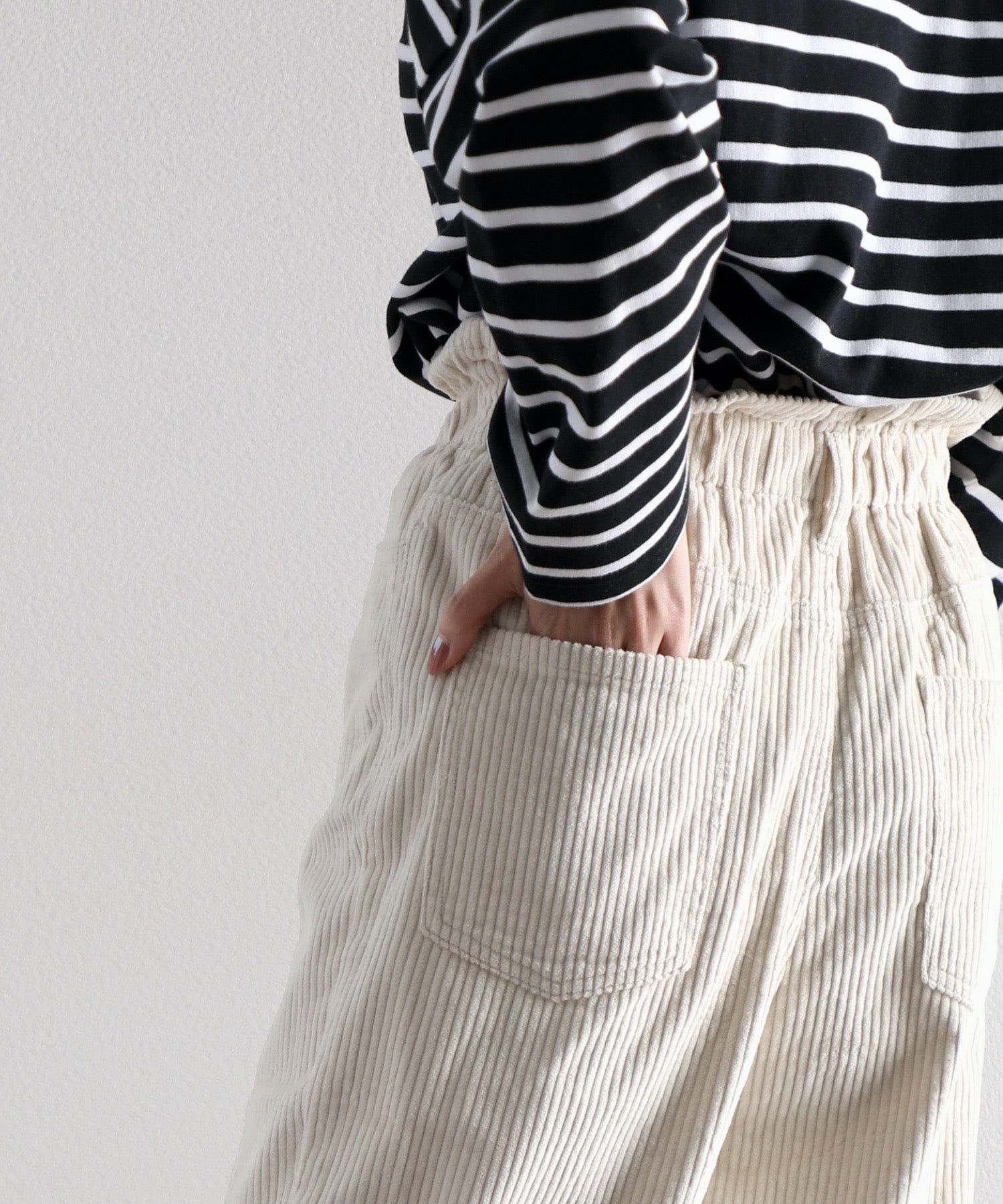 コットン100%のコーデュロイ素材で肌にも優しい着心地。