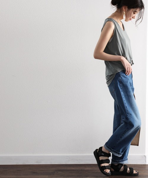 涼し気かつ軽やかな印象を与えてくれるサンダルをコーデの外しとして取り入れることで、