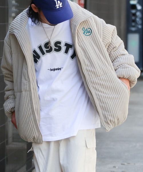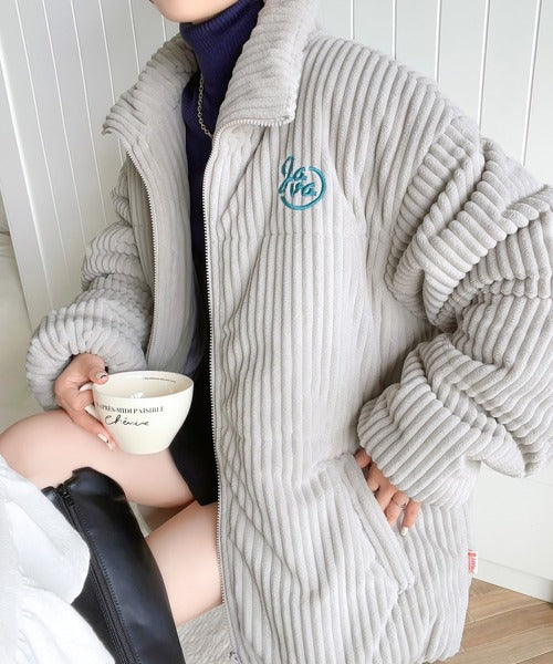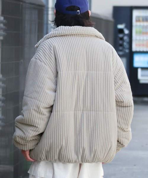 太畝のコーデュロイ素材が新鮮でもこもこで暖かい中綿ブルゾン。