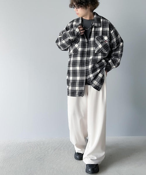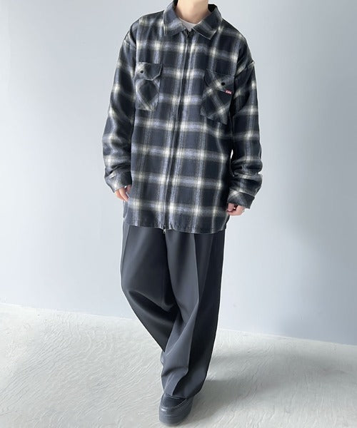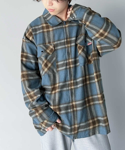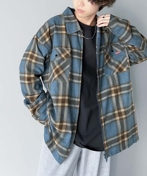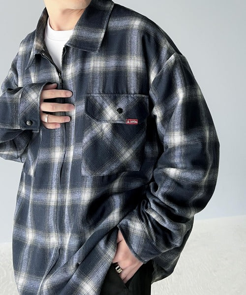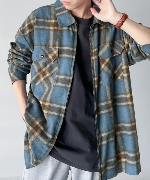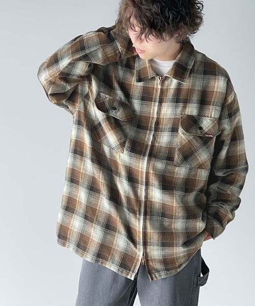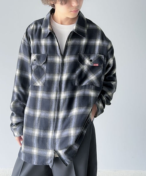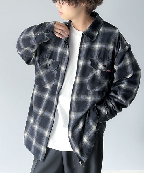 《Javaジャバコラボ》トレンドライクな着こなしを演出。オンブレチェック ジップアップシャツ jm1010266