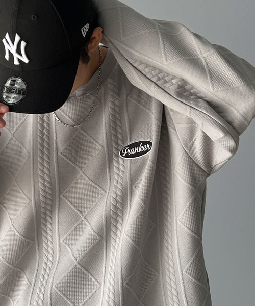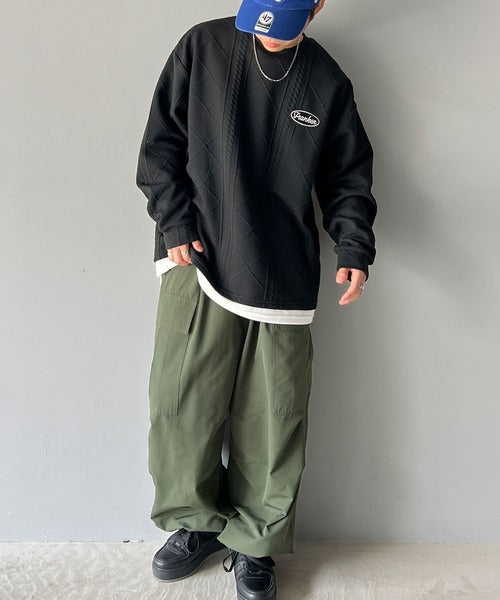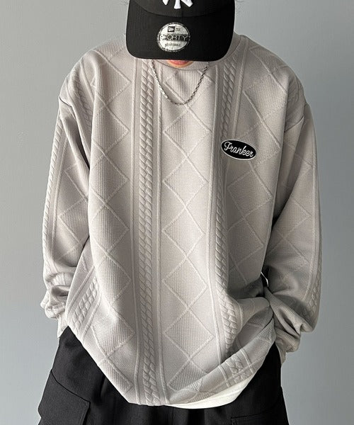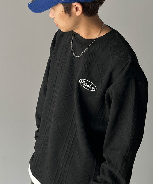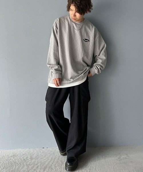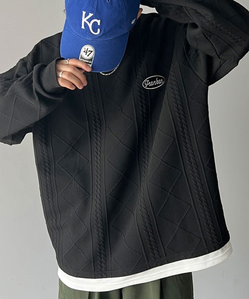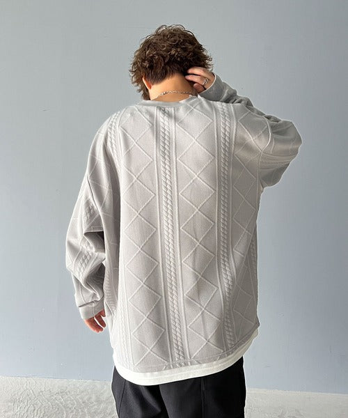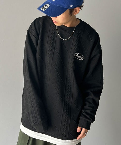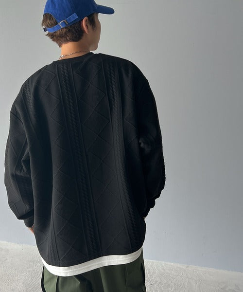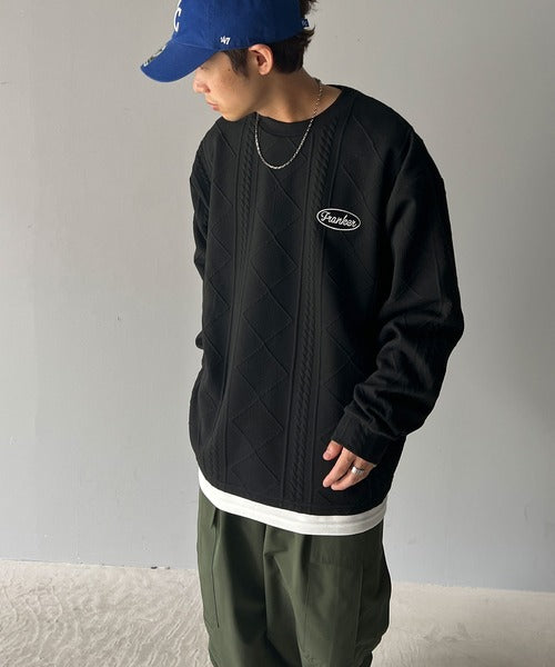《Javaジャバコラボ》ケーブル柄膨れジャガードフェイクレイヤードスウェット jm1019016