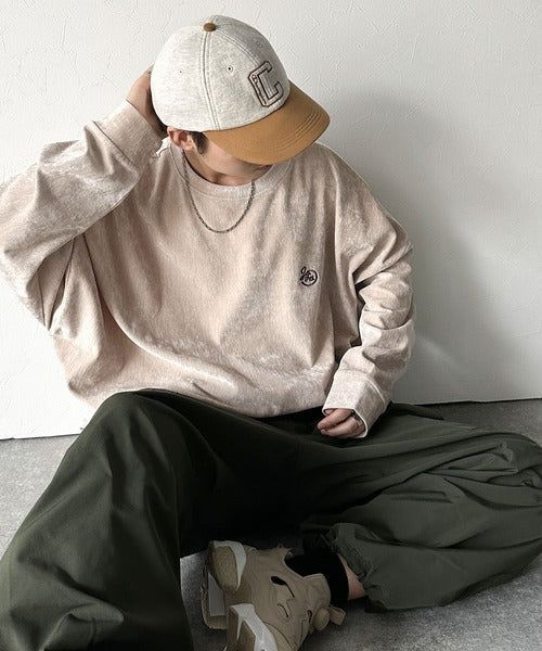 ゆったりオーバーサイズなのでダボっとしたボトムスと合わせるとトレンドな着こなしに。