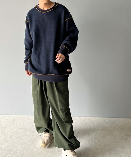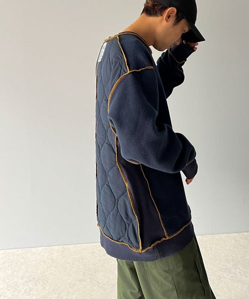フロントはスウェット、バックは波キルティング切替の2wayリバーシブルプルオーバー。