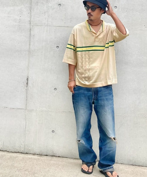 《JAVAジャバ 別注》大人のヴィンテージライク。レトロボーダーニットトップス jm1050112