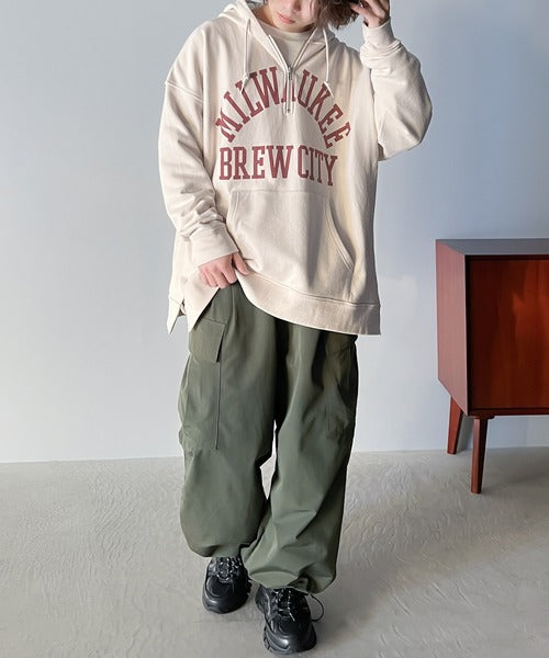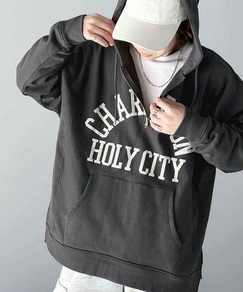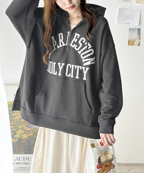 《メンズもレディースもお揃いで着れちゃう、カレッジパーカー》