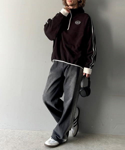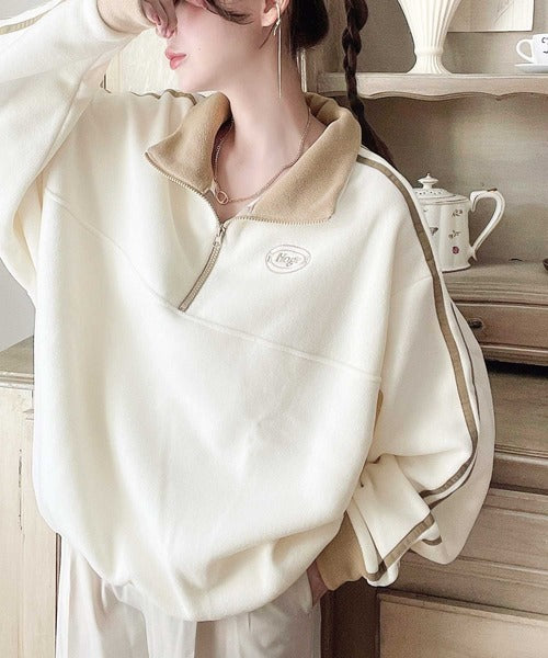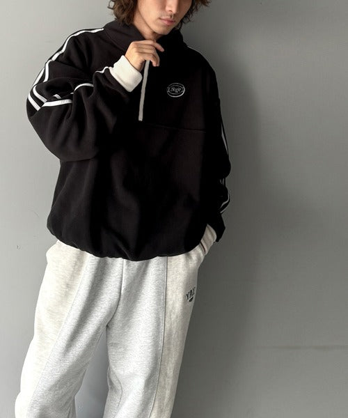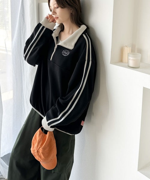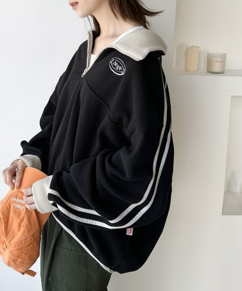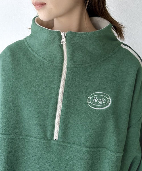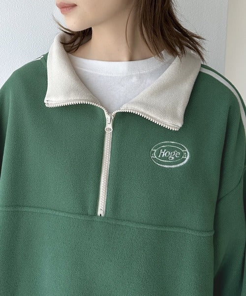「ハーフジップ×ワンポイント刺繍ロゴ」プルオーバー。