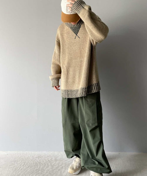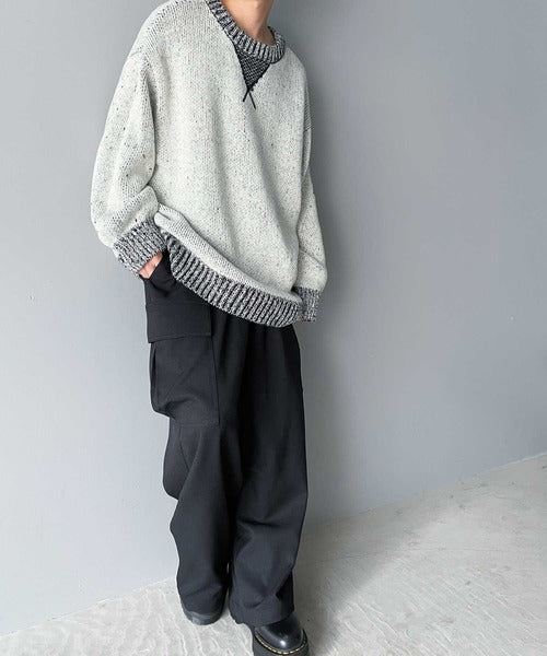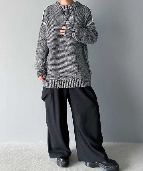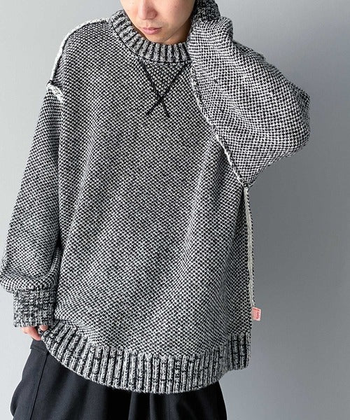 表裏で異なる表情を楽しめる2WAYリバーシブル仕様のニットプルオーバー。
