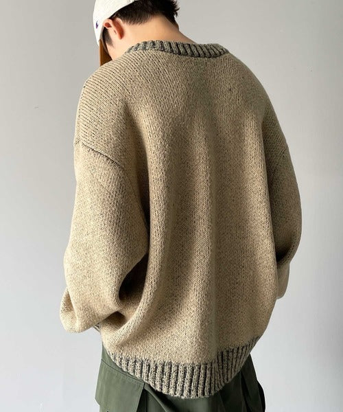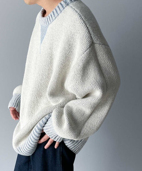 《JAVAジャバ 別注》ワンランク上のニットスタイル。 2wayリバーシブル襟配色Wジャガードニット jm1260041