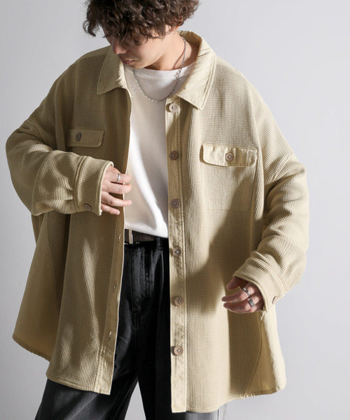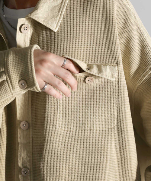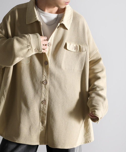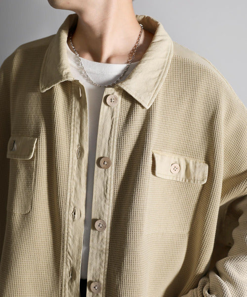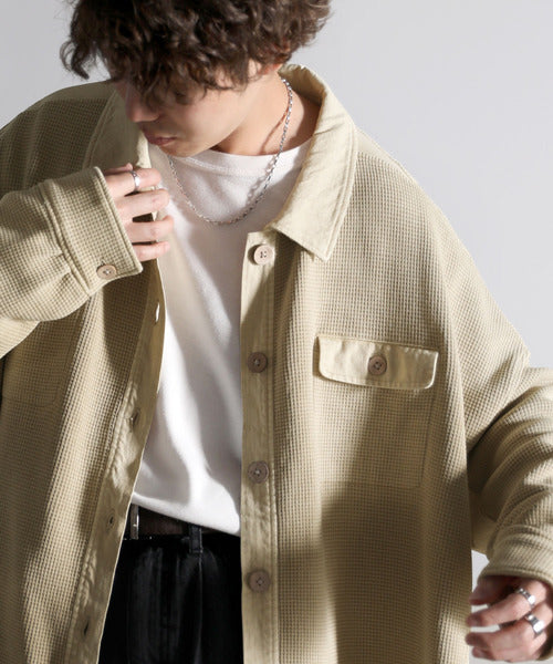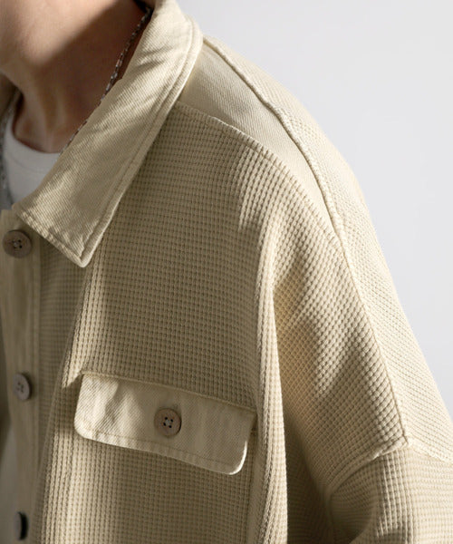 ワッフル×ツイル素材がポイントのシャツジャケット。