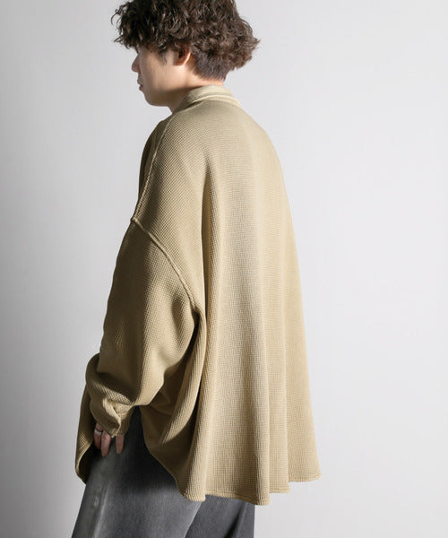 身幅は広めのオーバーサイズ感で、重厚感のあるワッフル地がトレンドな着こなしに◎