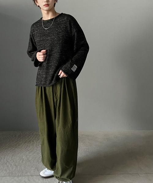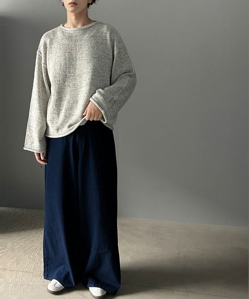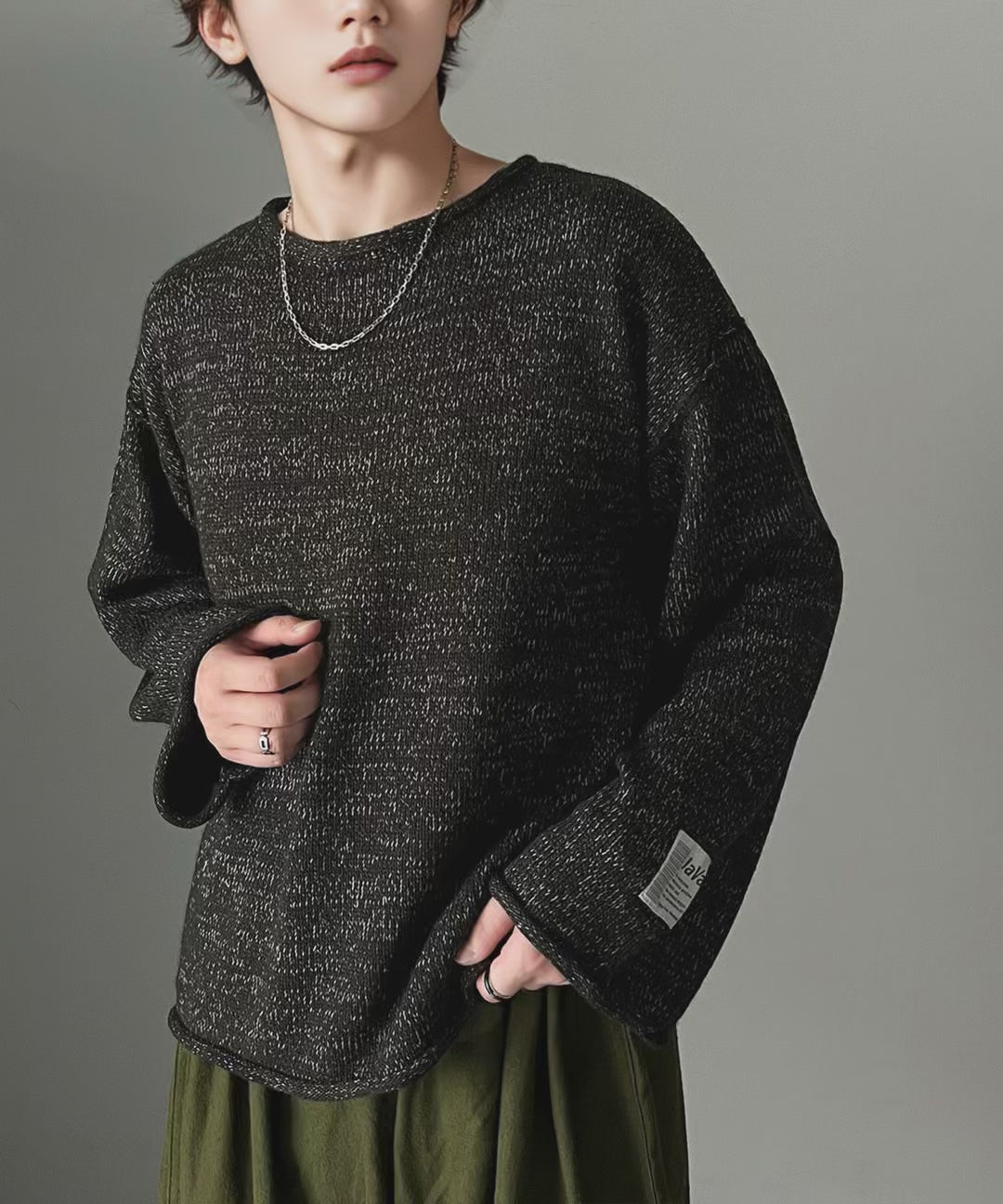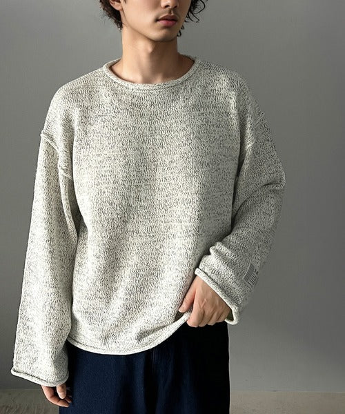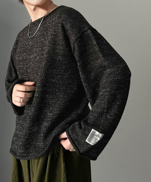 カットソーのような雰囲気漂うミックスカラーニットプルオーバー。