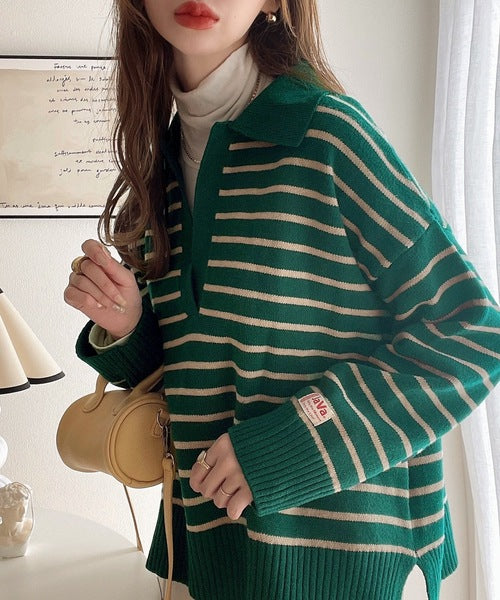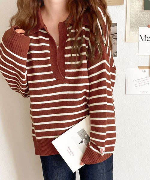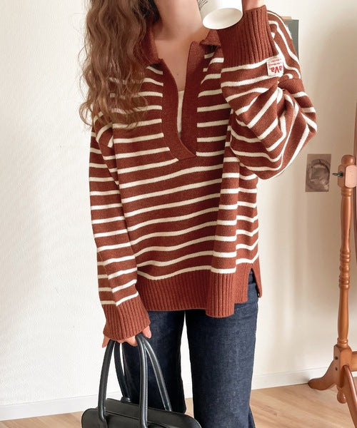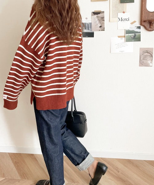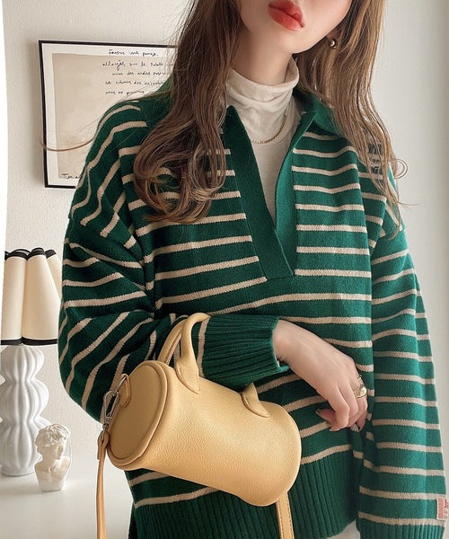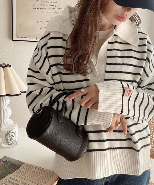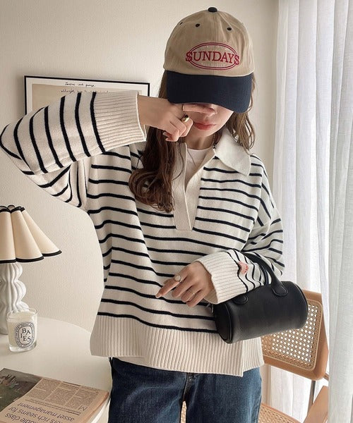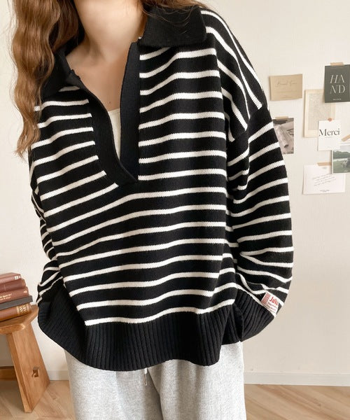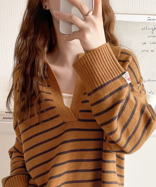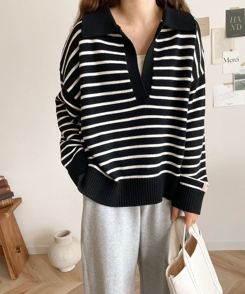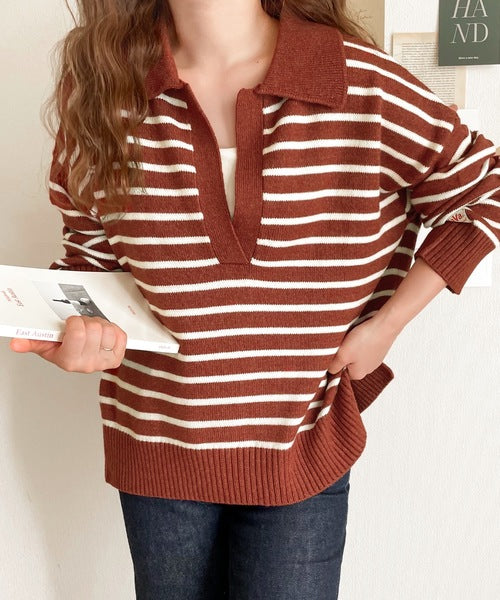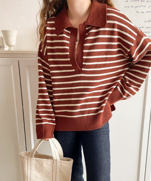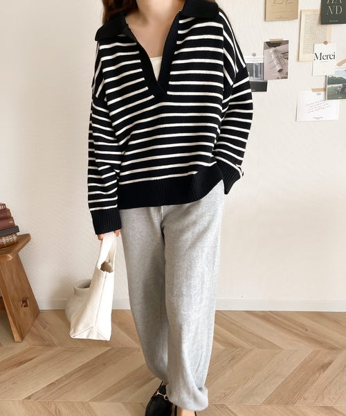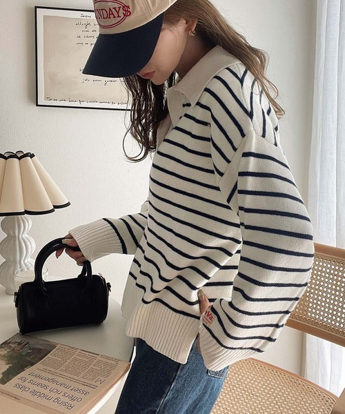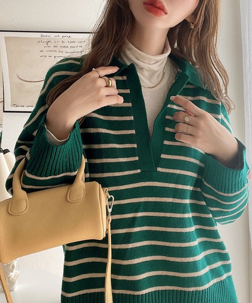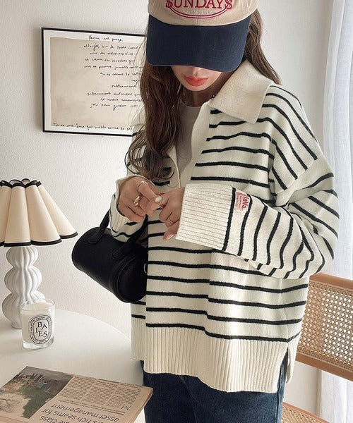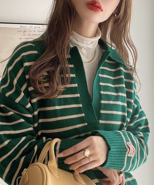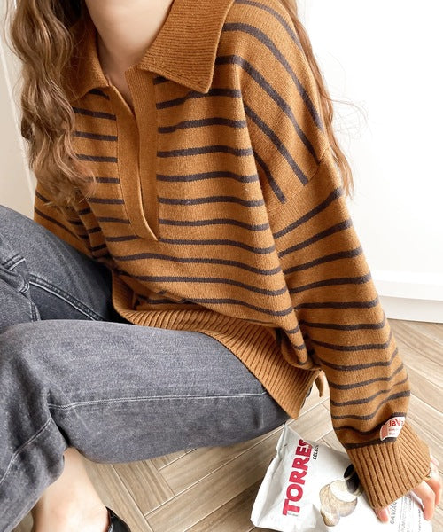 《JaVaジャバ コラボ》最旬ボーダー。スキッパーボーダーニットプルオーバー jv0420001