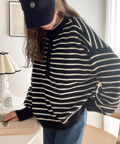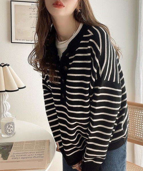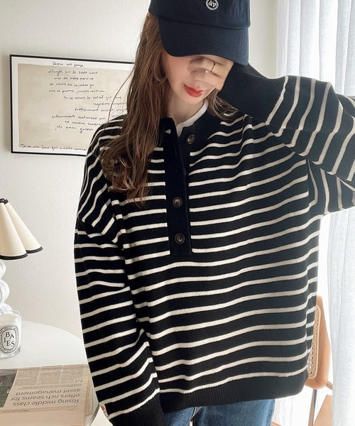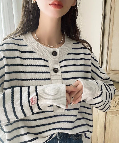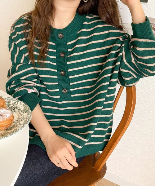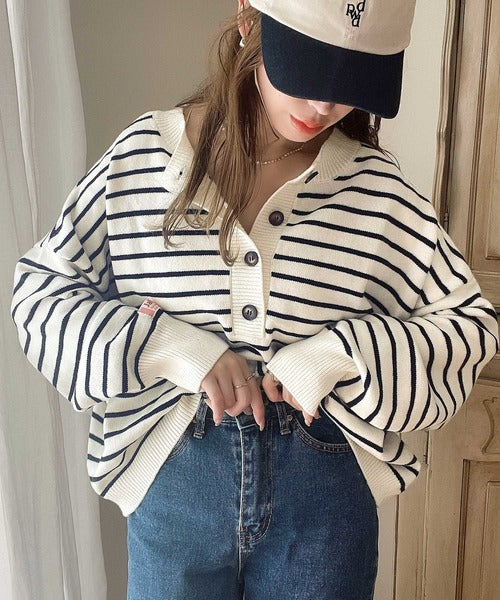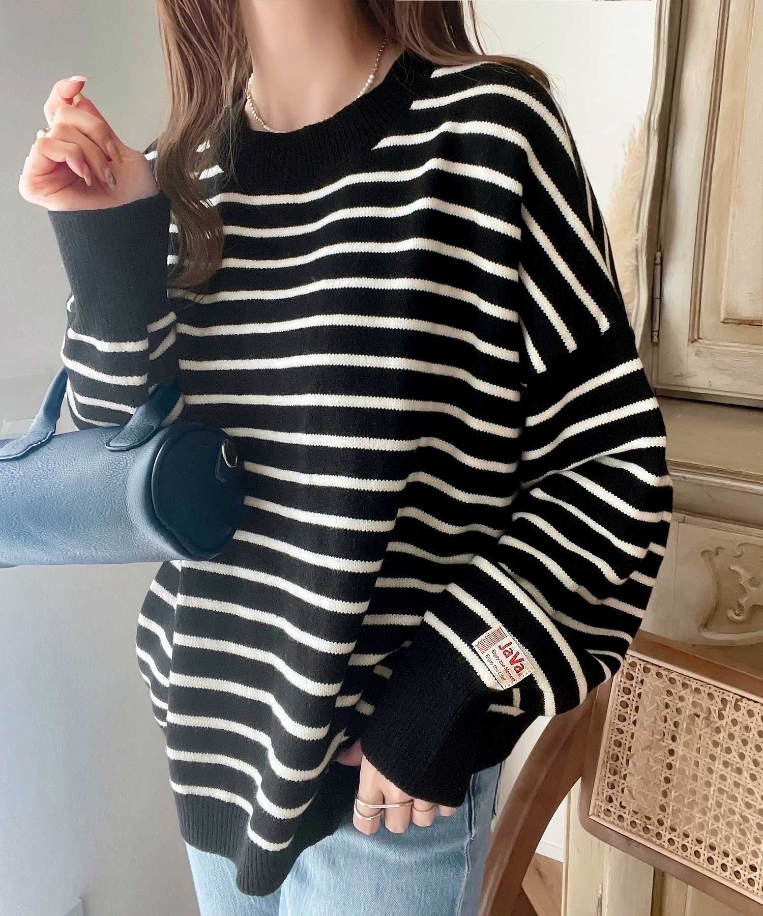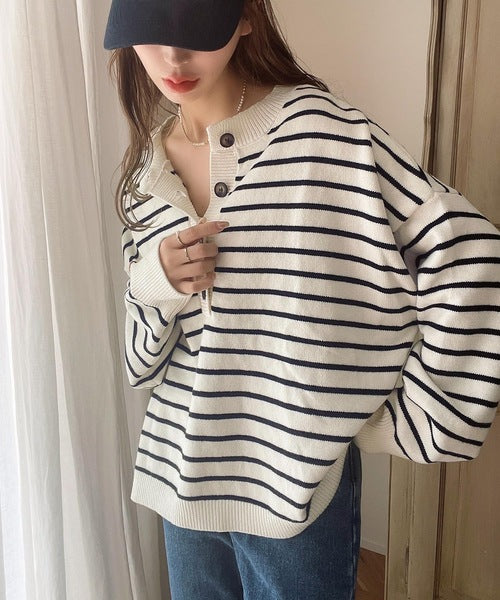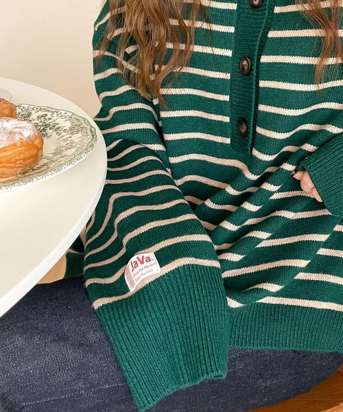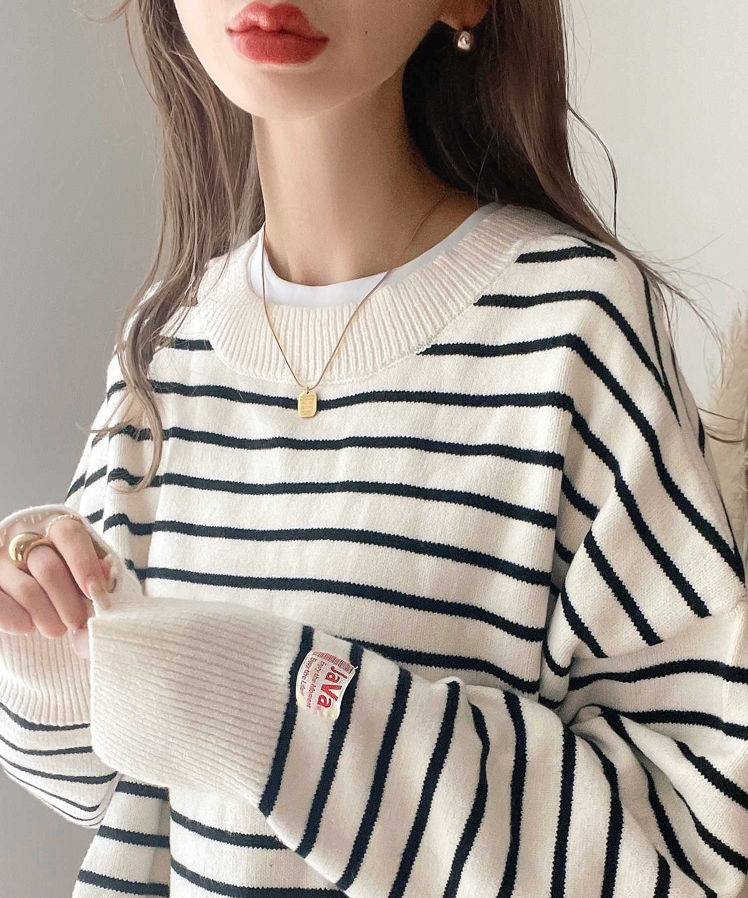《JaVaジャバ コラボ》最旬ボーダー。2wayヘンリーネックボーダーニットプルオーバー jv0420002