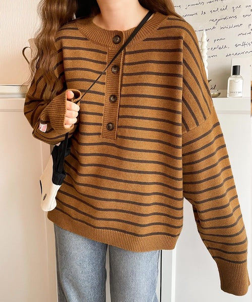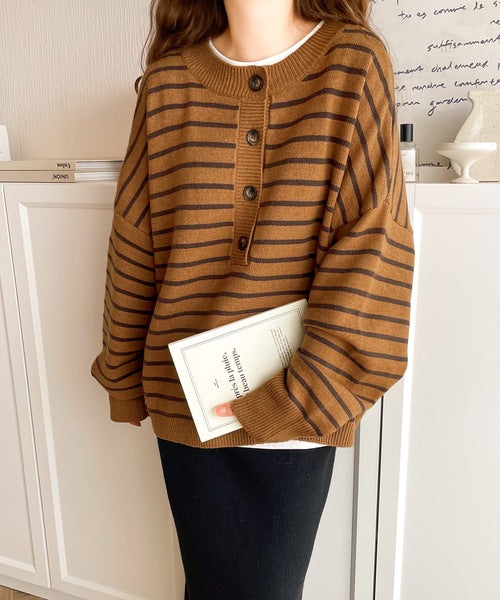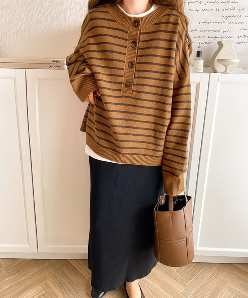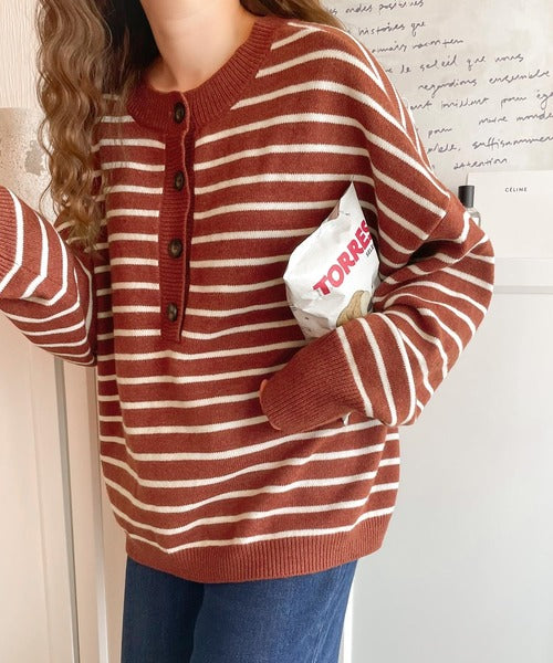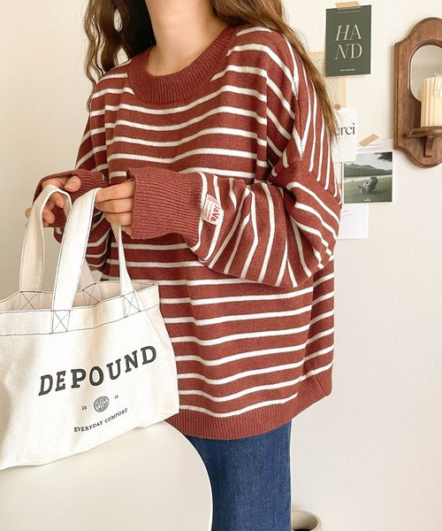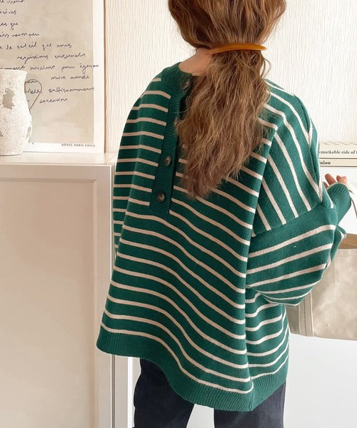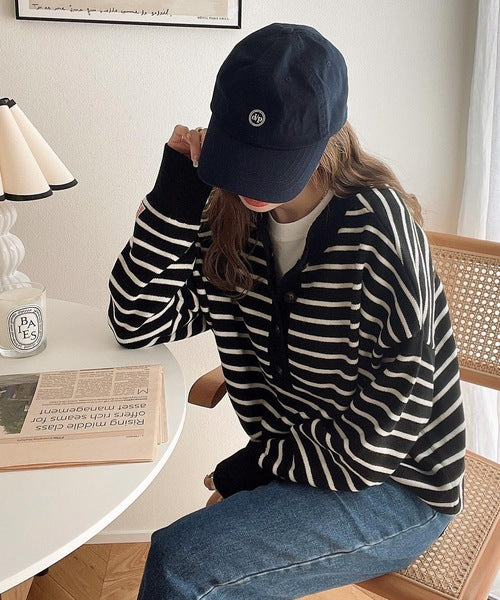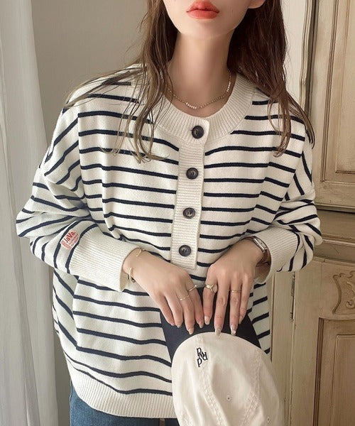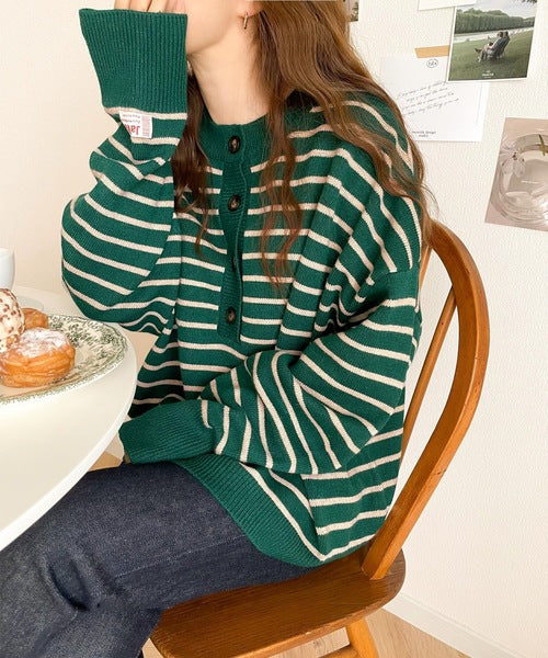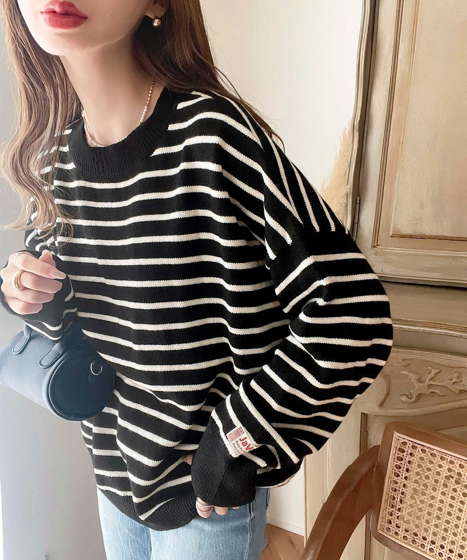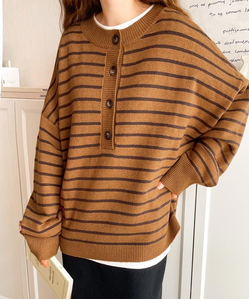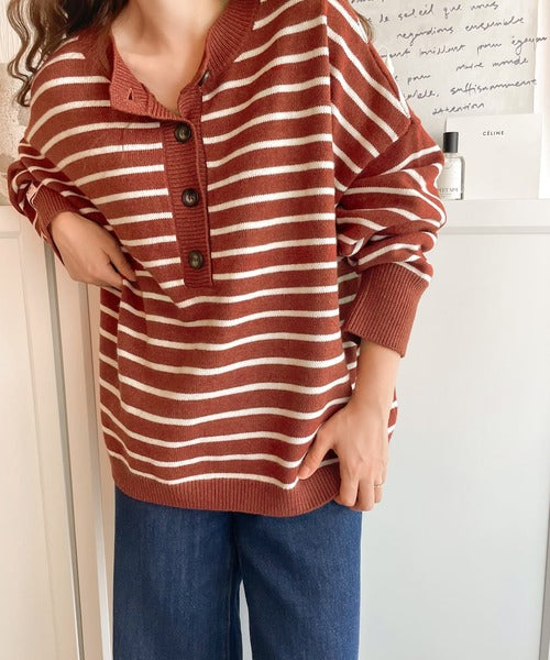 《JaVaジャバ コラボ》最旬ボーダー。2wayヘンリーネックボーダーニットプルオーバー jv0420002